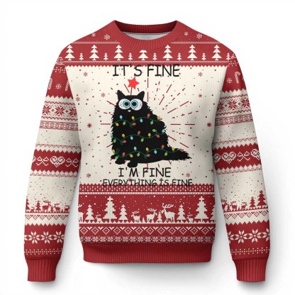 Funny Christmas Cat Ugly Christmas Sweater Its Fine Im Fine Everything Is Fine