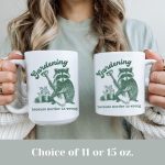 Start your morning with a laugh and a little sass! This funny gardening mug features a mischievous raccoon holding a shovel with the phrase “Gardening Because Murder Is Wrong.” Perfect for plant lovers, garden moms, and anyone who needs caffeine and comic relief. A hilarious gift for gardeners with a dark sense of humor.
