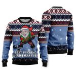 Funny Santa Playing Hockey Ugly Christmas Sweater