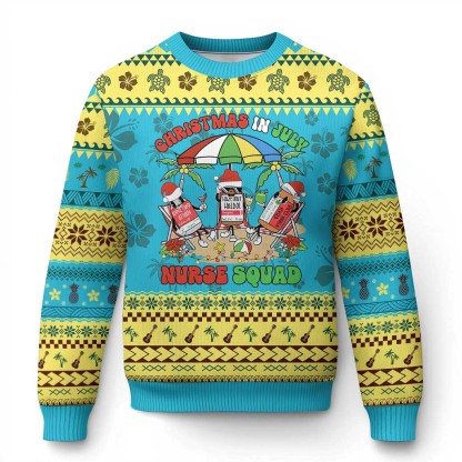 Funny Tropical Xmas Nurse Squad Ugly Christmas Sweater