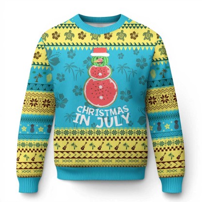 Funny Tropical Xmas Ugly Christmas Sweater Watermelon Summer Snowman