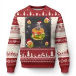 Funny Xmas Cat Ugly Christmas Sweater Santa Cat Hamburger Lover Galaxy Outer Space
