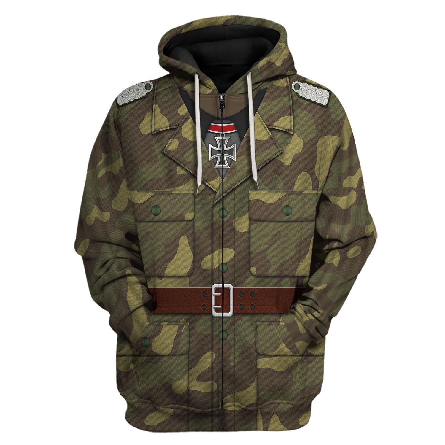 For all-over-print apparel lovers, the German SS Italian Camo M40 World War II Historical Camo hoodie zip from The Halloween Smoke is a striking choice that combines history with style. This unique piece makes for an unforgettable gift, and with its customization options, you can truly make it your own.