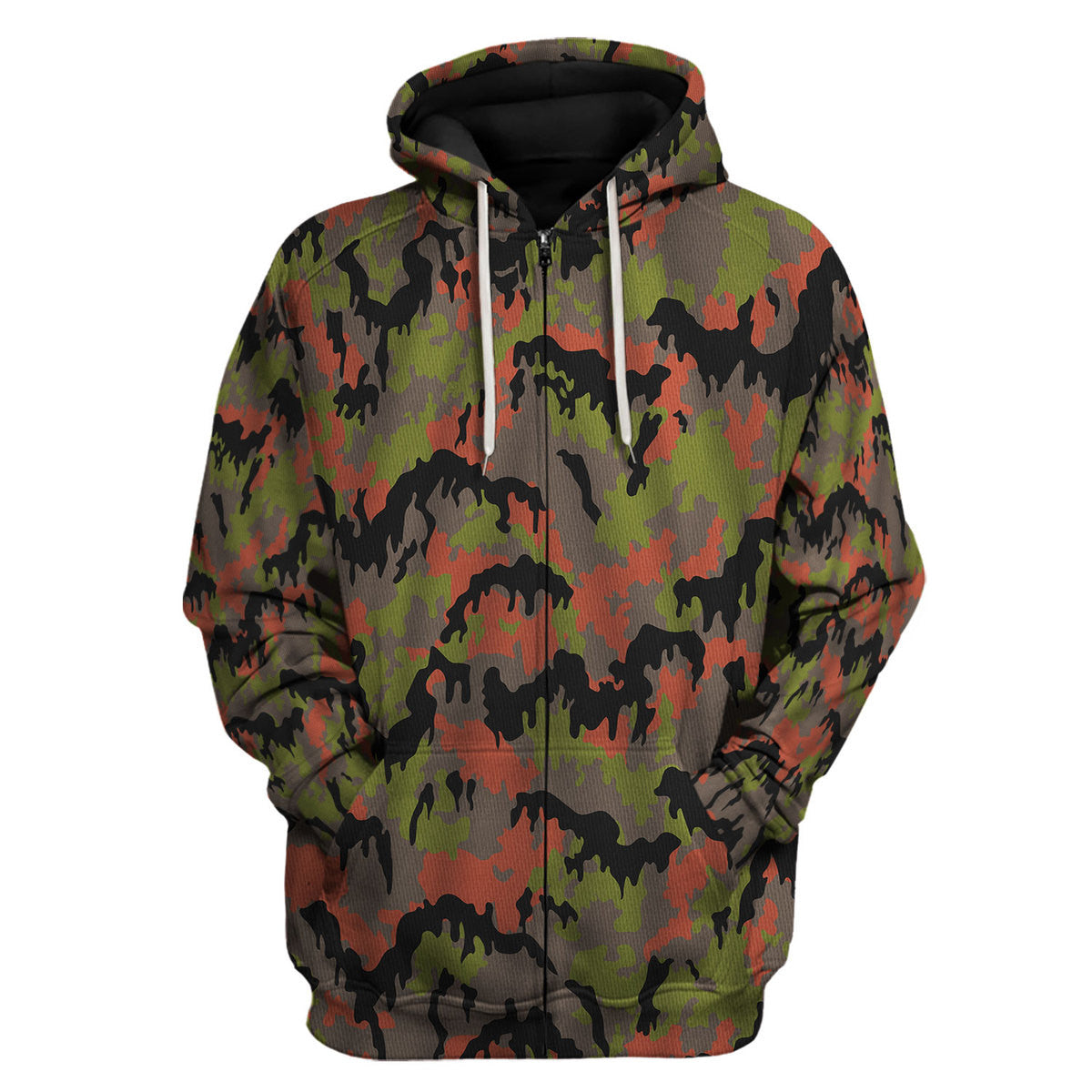 If you’re a lover of all-over-print apparel, the German World War 2 (WWII) Leibermuster Camo hoodie zip from The Halloween Smoke is the perfect choice for you. This unique piece makes an outstanding gift and can be personalized to reflect your individual style, ensuring you stand out in any crowd.