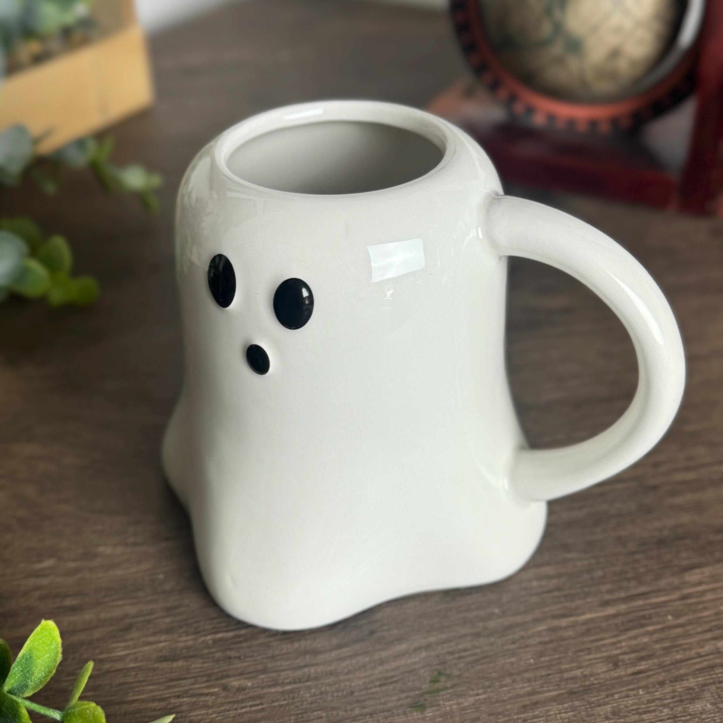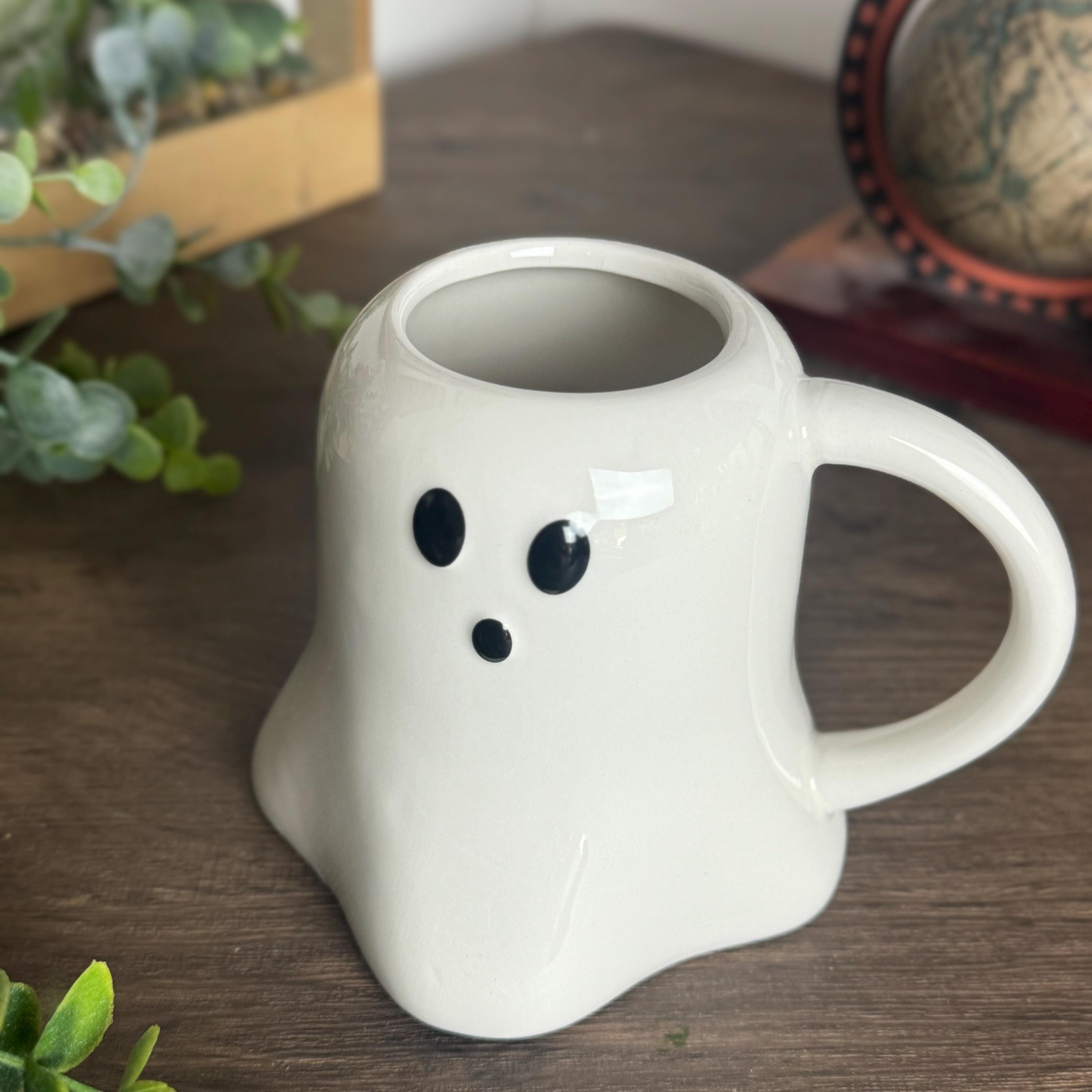 Perfect for Halloween enthusiasts, this charming ghost-shaped ceramic mug adds a playful touch to your spooky season sips. Ideal for hot cocoa, tea, or coffee on crisp autumn nights.