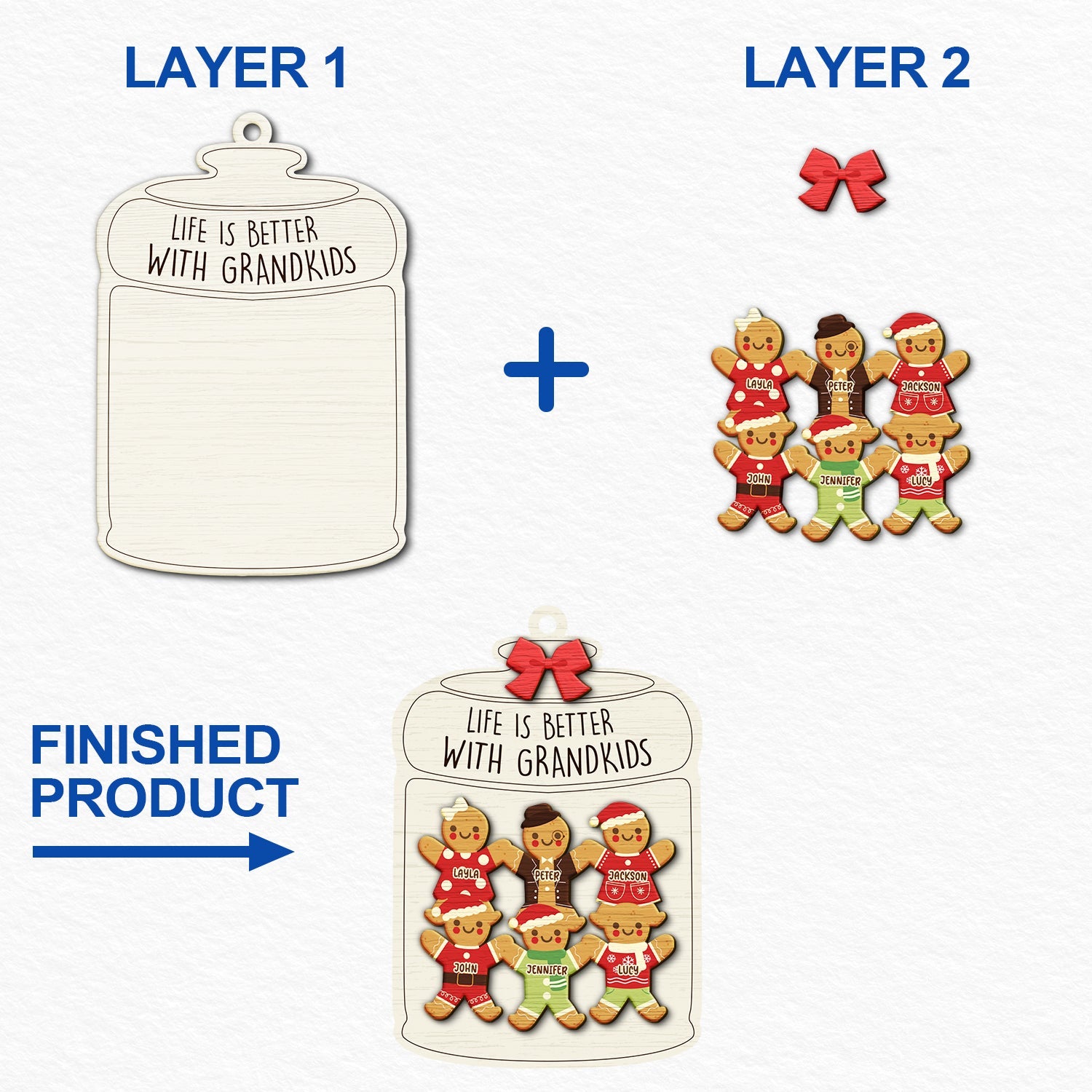 Gingerbread Life Is Better With Grandkids – Christmas, Gift For Grandparent – Personalized 2-Layered Wooden Ornament