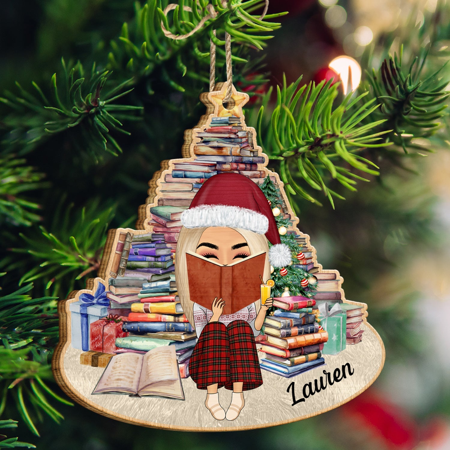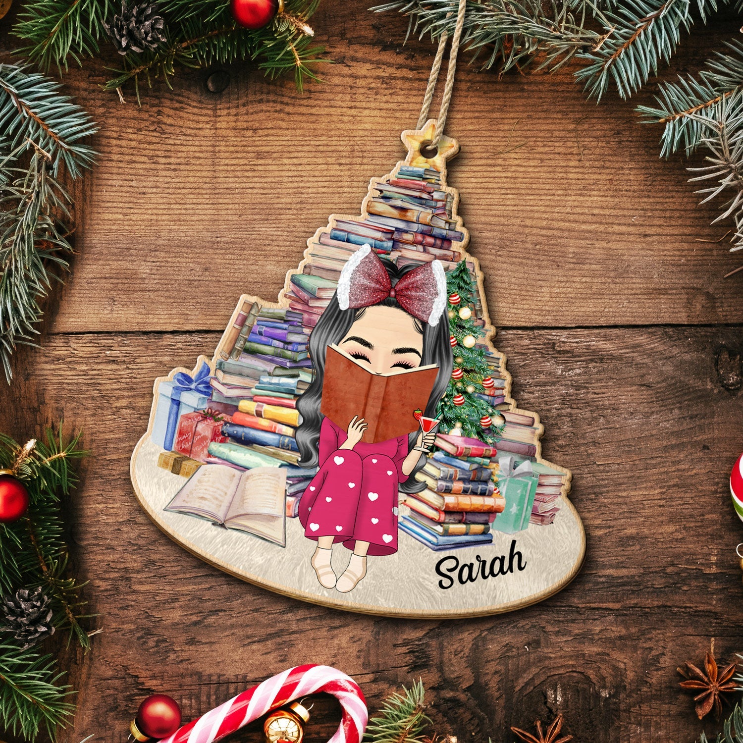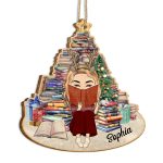 Girl Under Book Christmas Tree – Xmas Gift For Women Who Love Reading Books – Personalized Custom Shaped Wooden Ornament