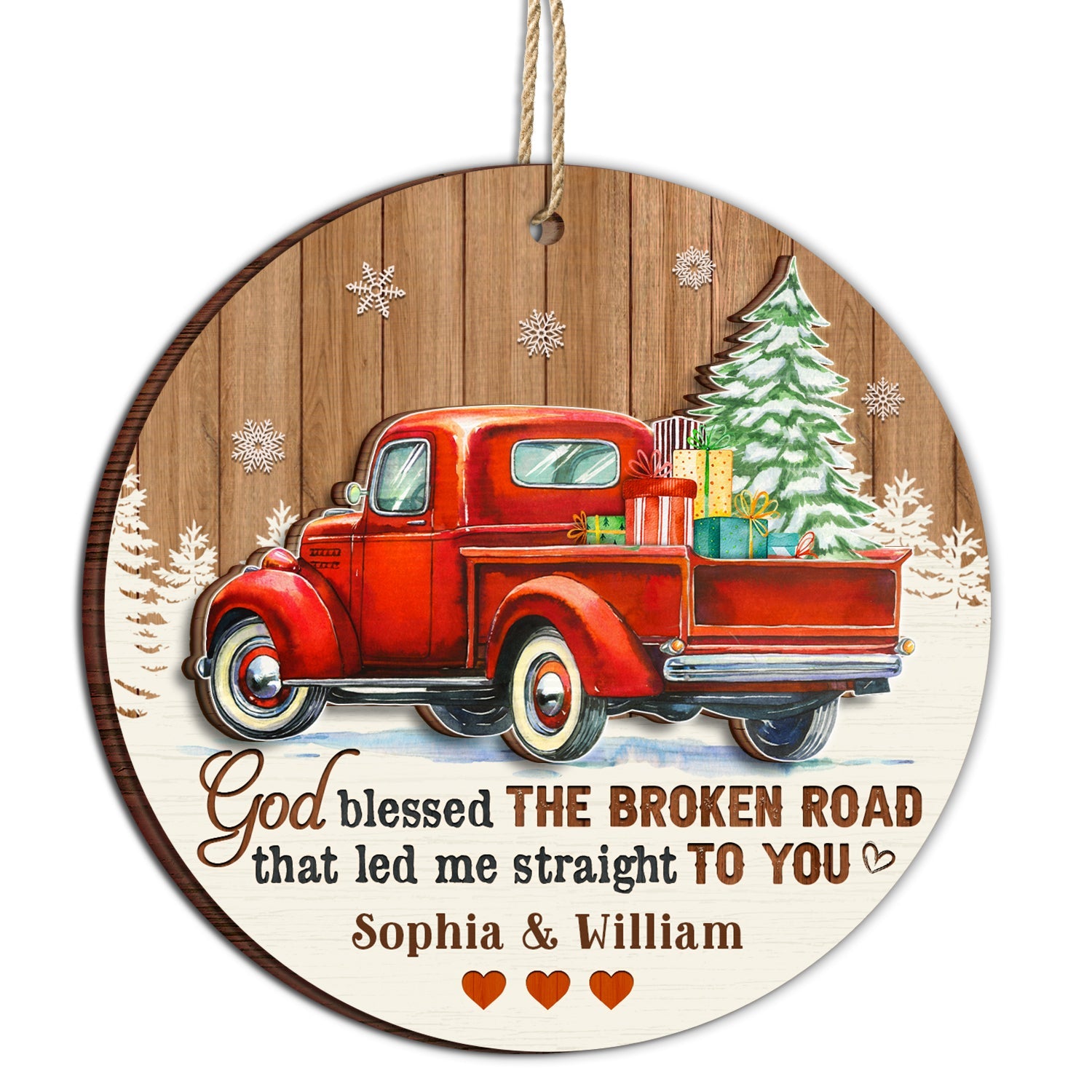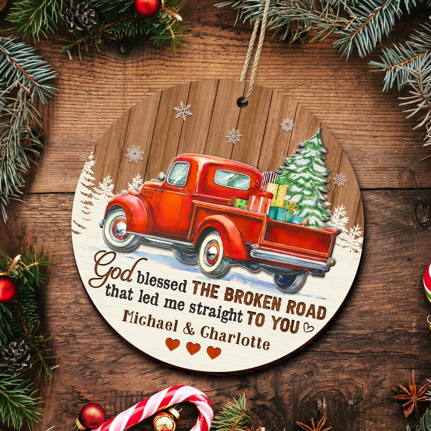 God Blessed The Broken Road – Christmas Gifts For Couples, Husband, Wife – Personalized 2-Layered Wooden Ornament