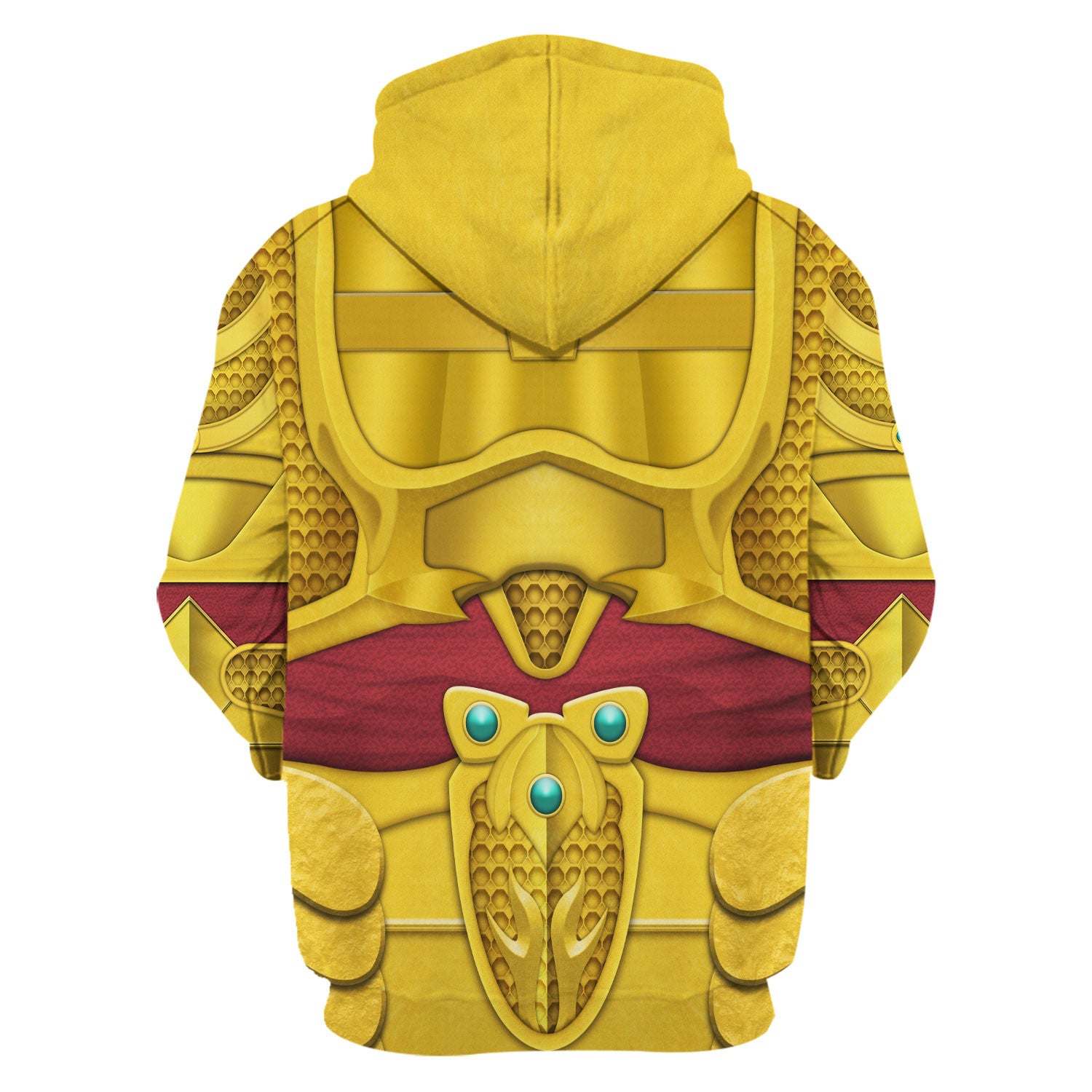 Embrace your love for all-over-print apparel with the Goldar Mighty Morphin cosplay hoodie zip from The Halloween Smoke. This unique piece makes for a fantastic gift for fans of the series and can be personalized to reflect your own style, ensuring every wear is a statement of individuality.