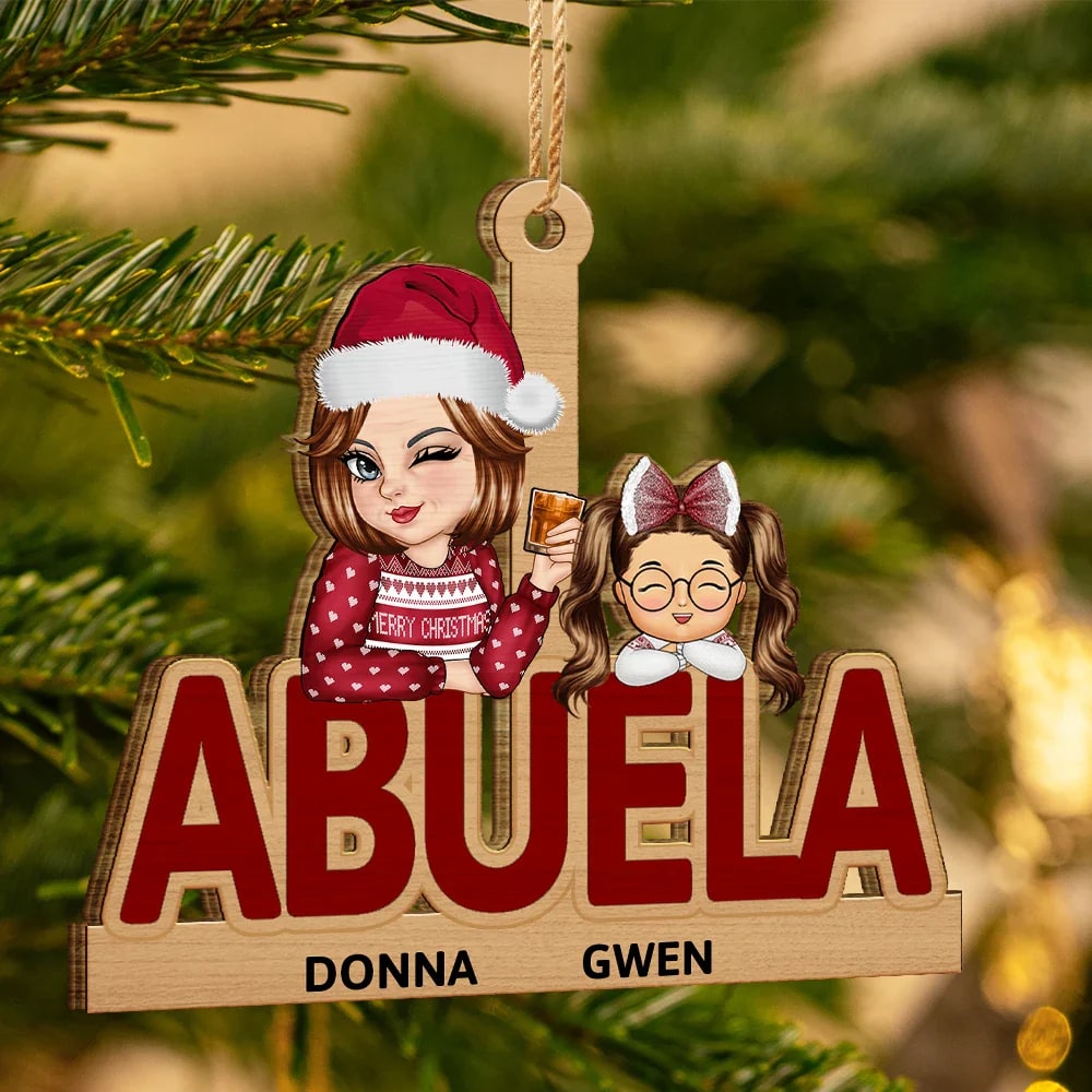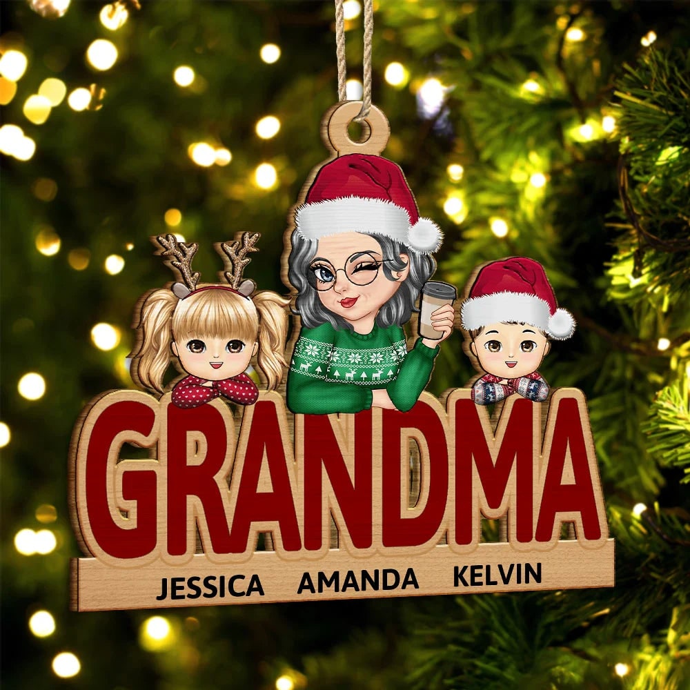 Grandma & Grandkids Christmas – Personalized Wooden Cutout Ornament