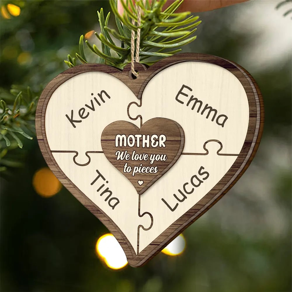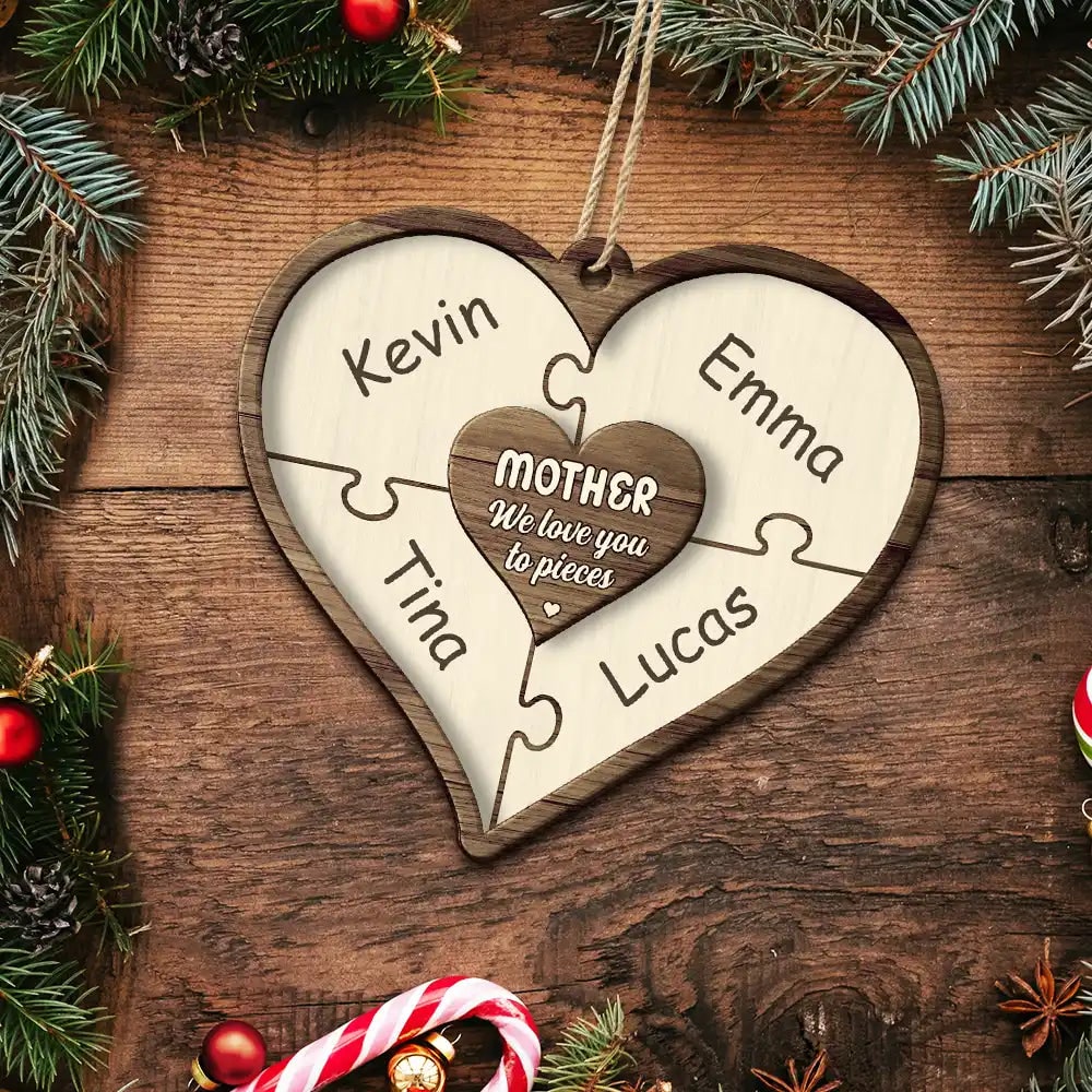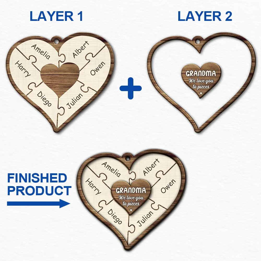 Grandma Mom Grandpa Dad We Love You To Pieces – Personalized 2-Layered Wooden Ornament