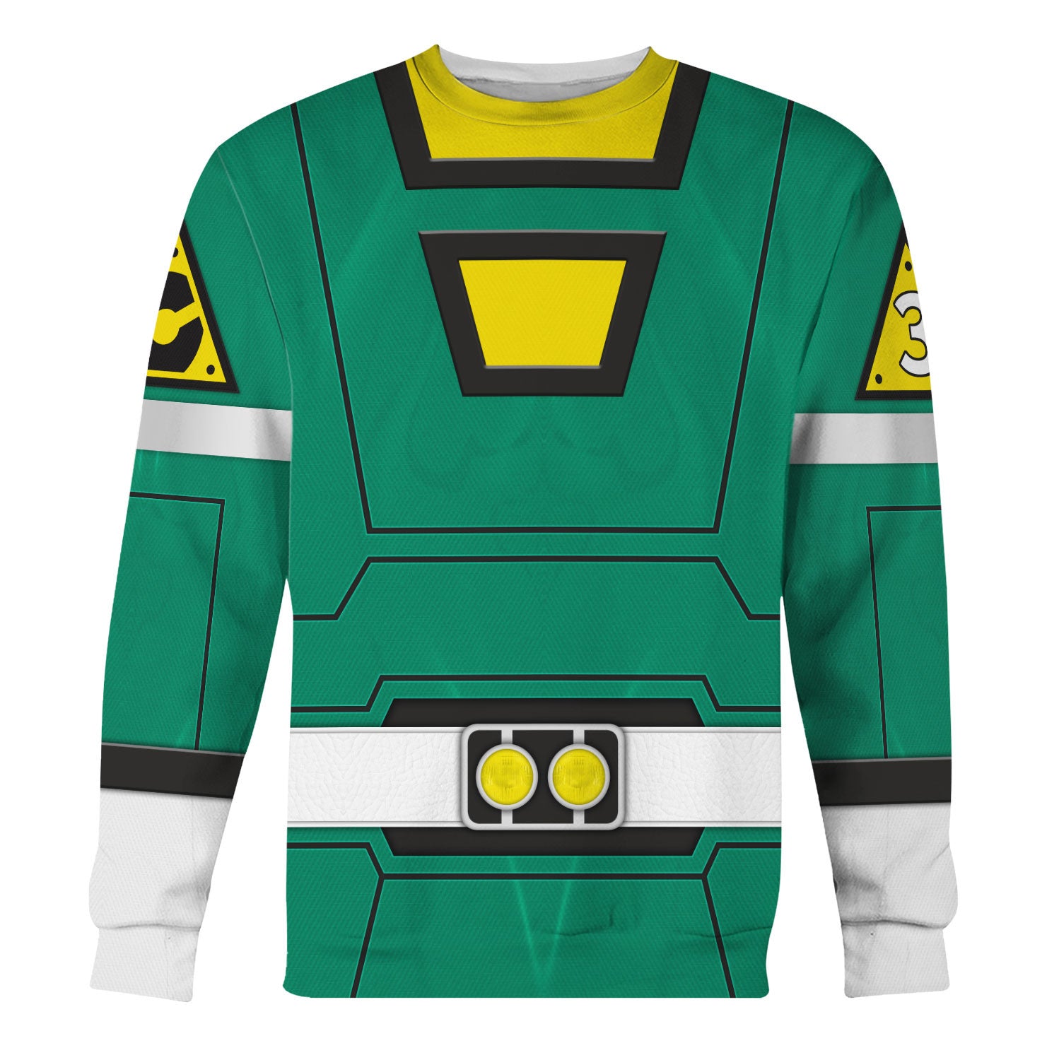 The Green Power Rangers Turbo cosplay sweatshirt is an ideal choice for all-over-print apparel lovers, offering a vibrant and unique design that stands out in any wardrobe. This sweatshirt makes for a fantastic gift for fans of the series and can be personalized to create a truly special piece from The Halloween Smoke.