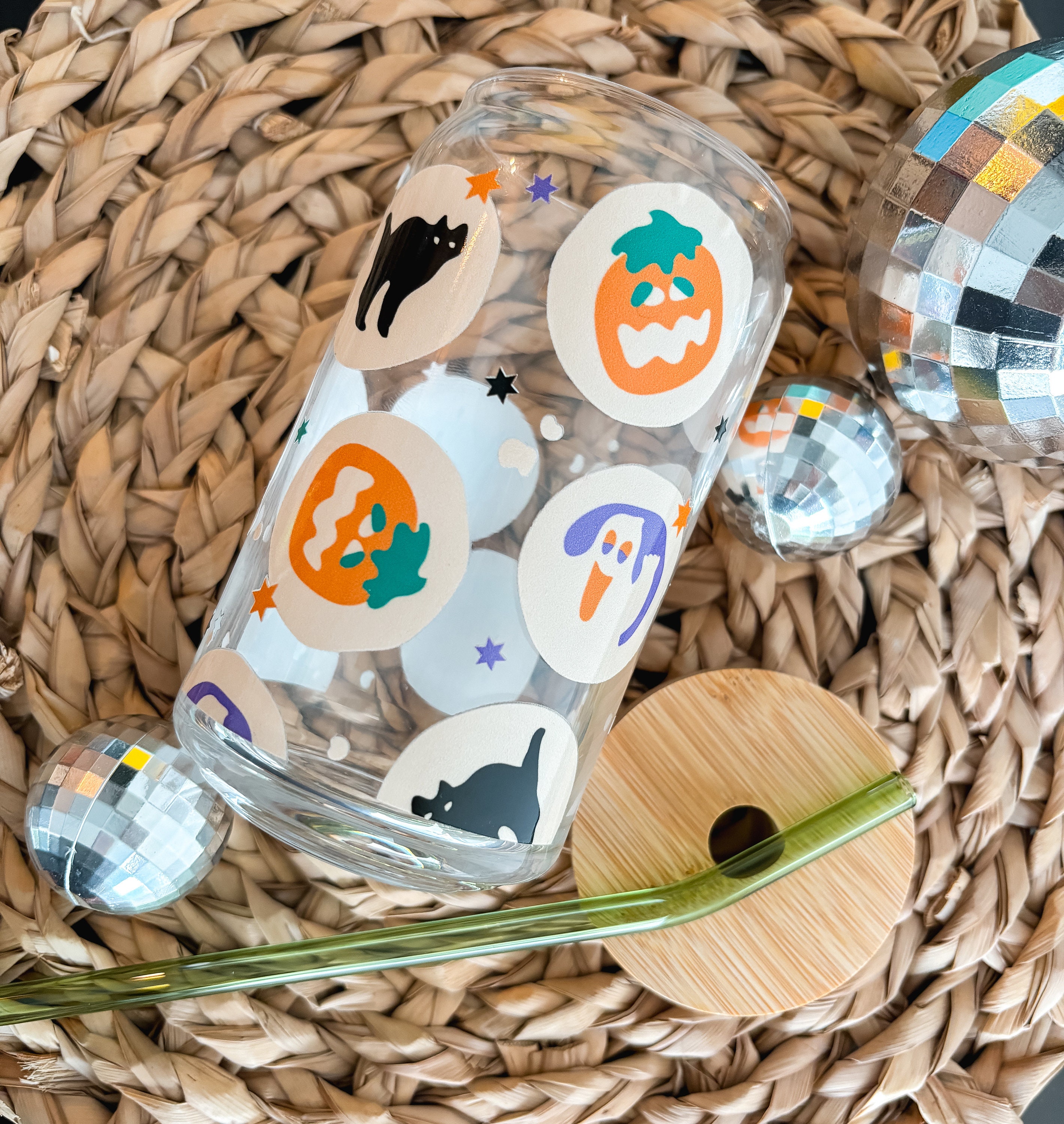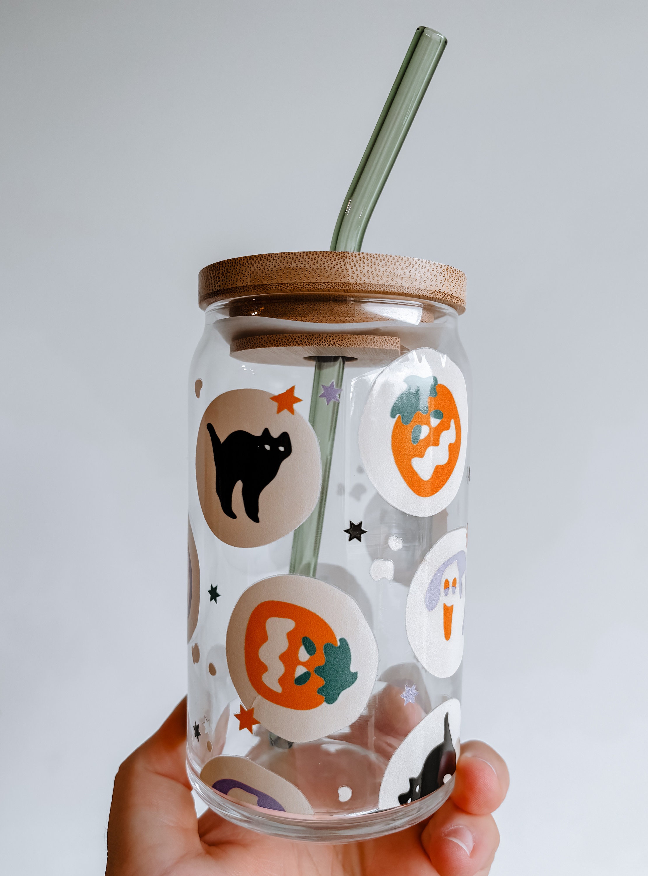 This listing is for a 16oz or 20oz beer can glass with a Halloween sugar cookie print design. It’s perfect for iced coffee or beer. Handmade with outdoor permanent vinyl; slight imperfections may occur. Hand wash only; air dry only; not dishwasher, microwave, or freezer safe. Straws (stainless steel or glass) are sold separately.
