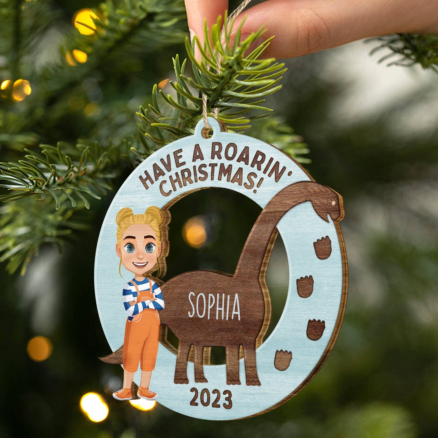 Have A Roarin’ Christmas – Xmas Gift For Kid, Baby Loving Dinosaur – Personalized Wooden Cutout Ornament