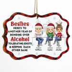 Here’s To Another Year Of Bonding Over Alcohol – Christmas Gifts For Besties – Personalized Medallion Wooden Ornament