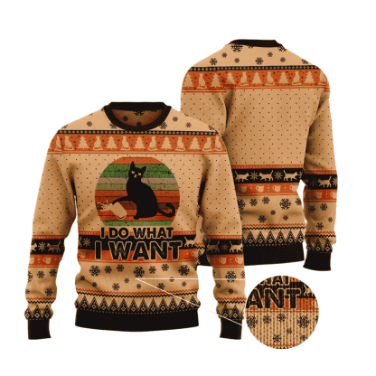 I Do What A Want Black Cat Ugly Christmas Sweater Xmas Gift