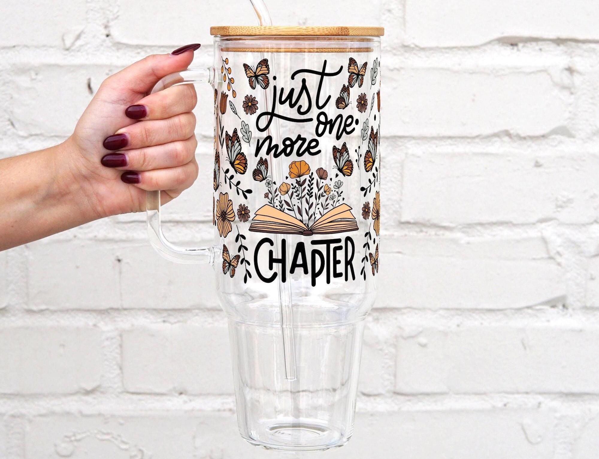 Just One More Chapter 40oz Glass Tumbler with Handle Lid and Straw – Book Lover Gift