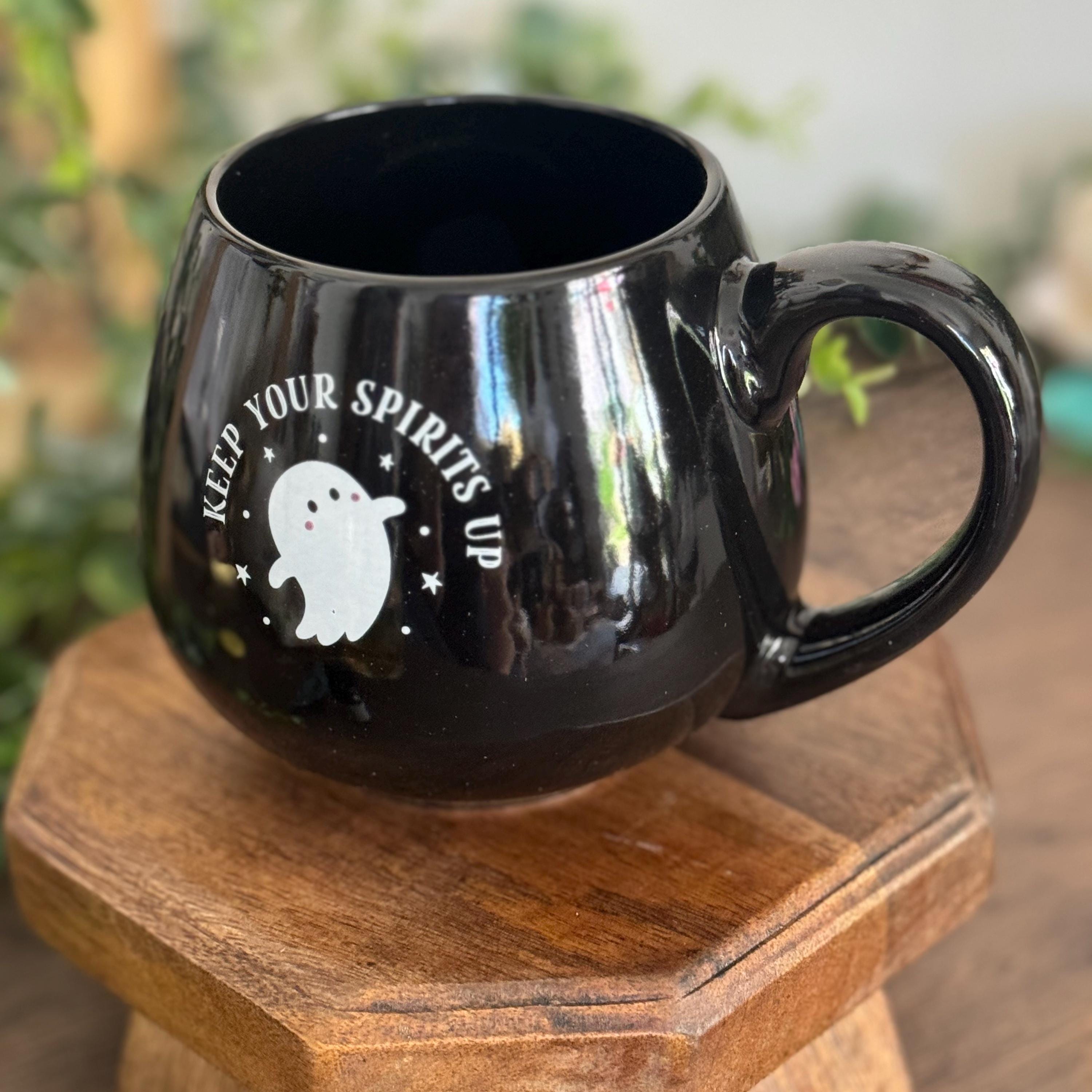 Sip in spooky style with this rounded ceramic mug featuring a playful ghost illustration and the phrase “Keep Your Spirits Up.” Perfect for cozy autumn evenings, Halloween gatherings, or as a fun seasonal gift.