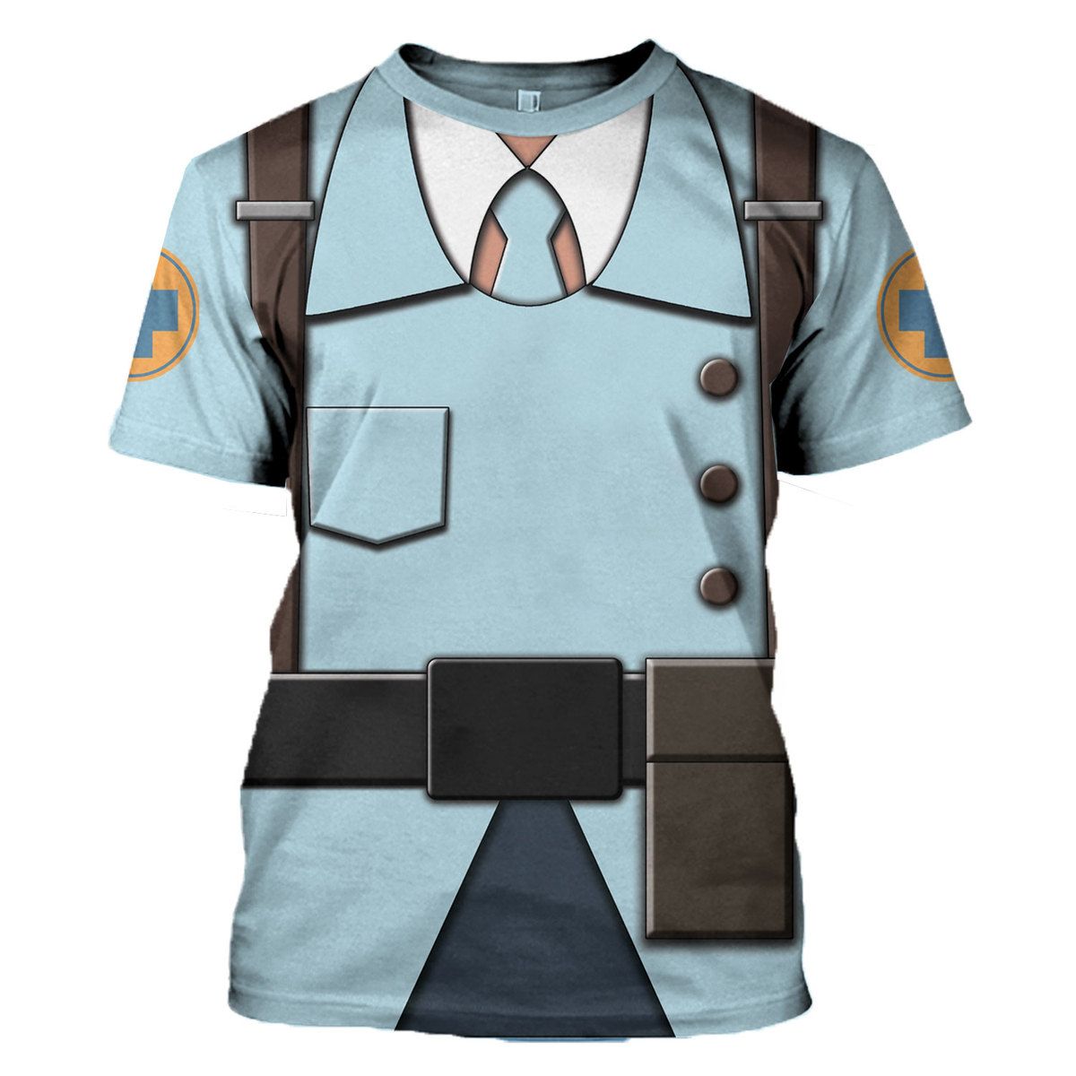 The Medic Blue Team TF2 t-shirt from The Halloween Smoke is the perfect choice for all-over-print apparel lovers who appreciate unique and eye-catching designs. This t-shirt makes for a fantastic gift, especially for fans of Team Fortress 2, and can be personalized to reflect your own style or that of a loved one.