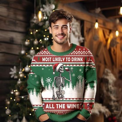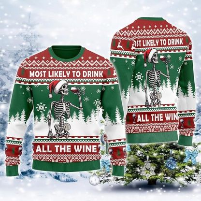 Most Likely To Drink All The Wine Ugly Christmas Sweater