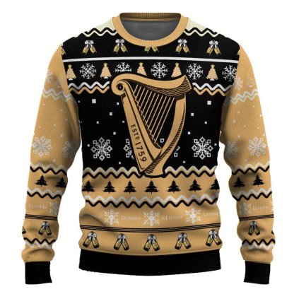Personalized Iconic Irish Stout Pine Tree Snowing Ugly Christmas Sweater