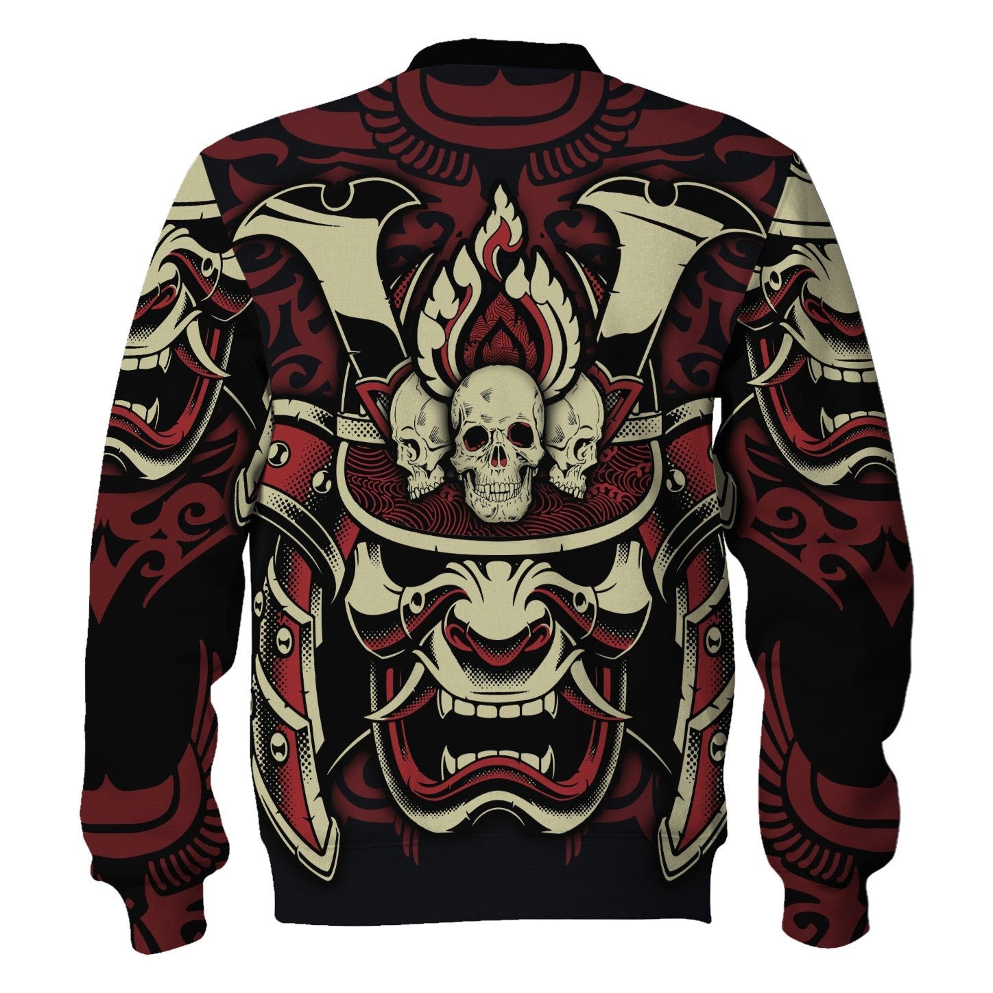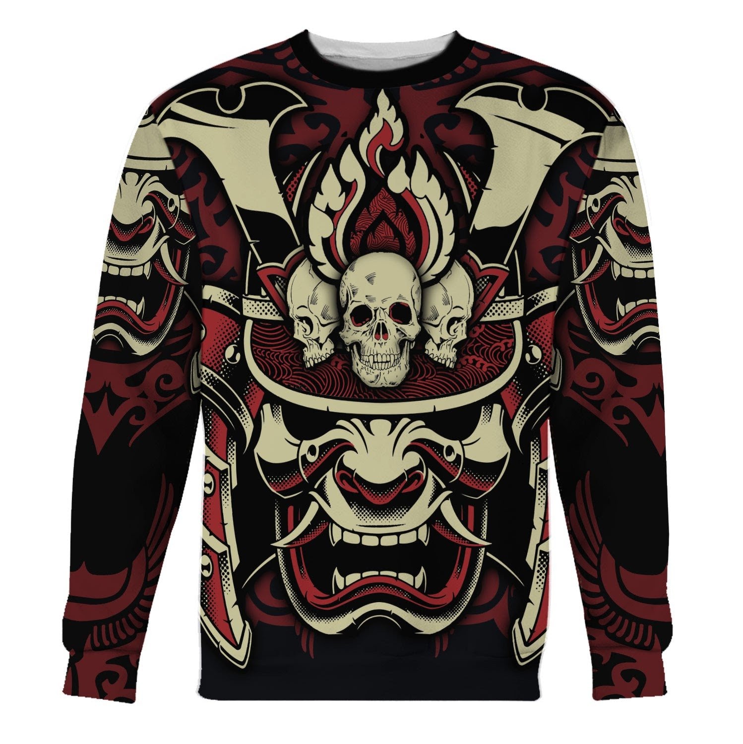The Samurai And Skull cosplay sweatshirt is a perfect choice for all-over-print apparel lovers, combining bold designs with comfort for an eye-catching look. This unique sweatshirt from The Halloween Smoke makes for an exceptional gift and can be personalized to showcase your individual style.