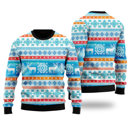 Santas Reindeer Blue Pattern Ugly Christmas Sweater