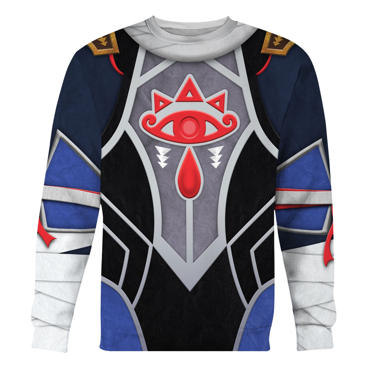 The Sheik Zelda Attire sweatshirt from The Halloween Smoke is a perfect choice for all-over-print apparel lovers, making it a unique gift for fans of fantasy and adventure. Personalize your style with this exclusive design that stands out in any crowd, reflecting your passion for the extraordinary.