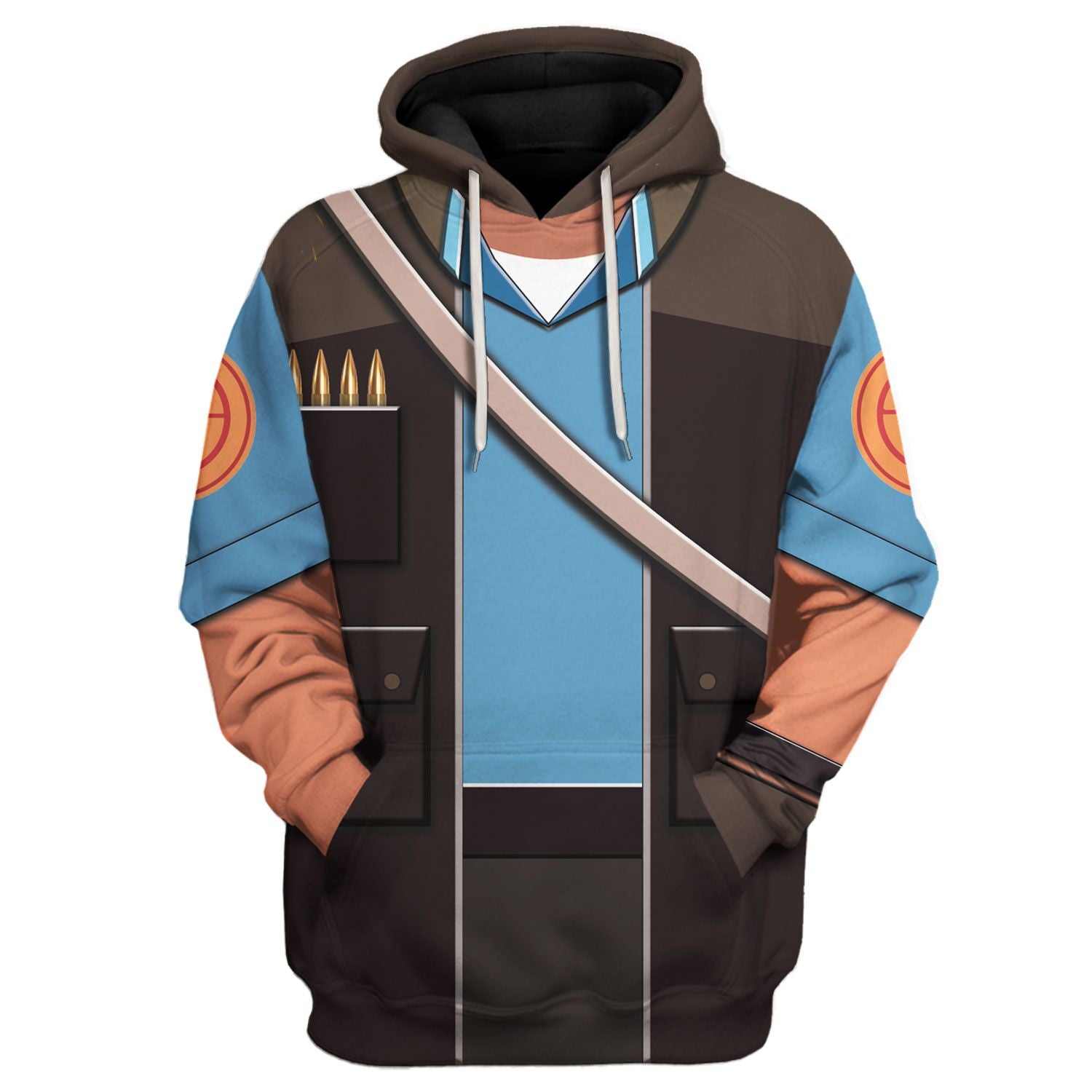 The Sniper Blue Team TF2 hoodie is the ultimate choice for all-over-print apparel lovers, perfect for showcasing your unique style or giving as a one-of-a-kind gift. With its striking design and personalized touch, this hoodie from The Halloween Smoke is sure to make a statement.