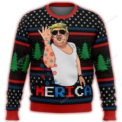 T Merica Funny Christmas Sweater Unisex Funny Ugly Christmas Sweater