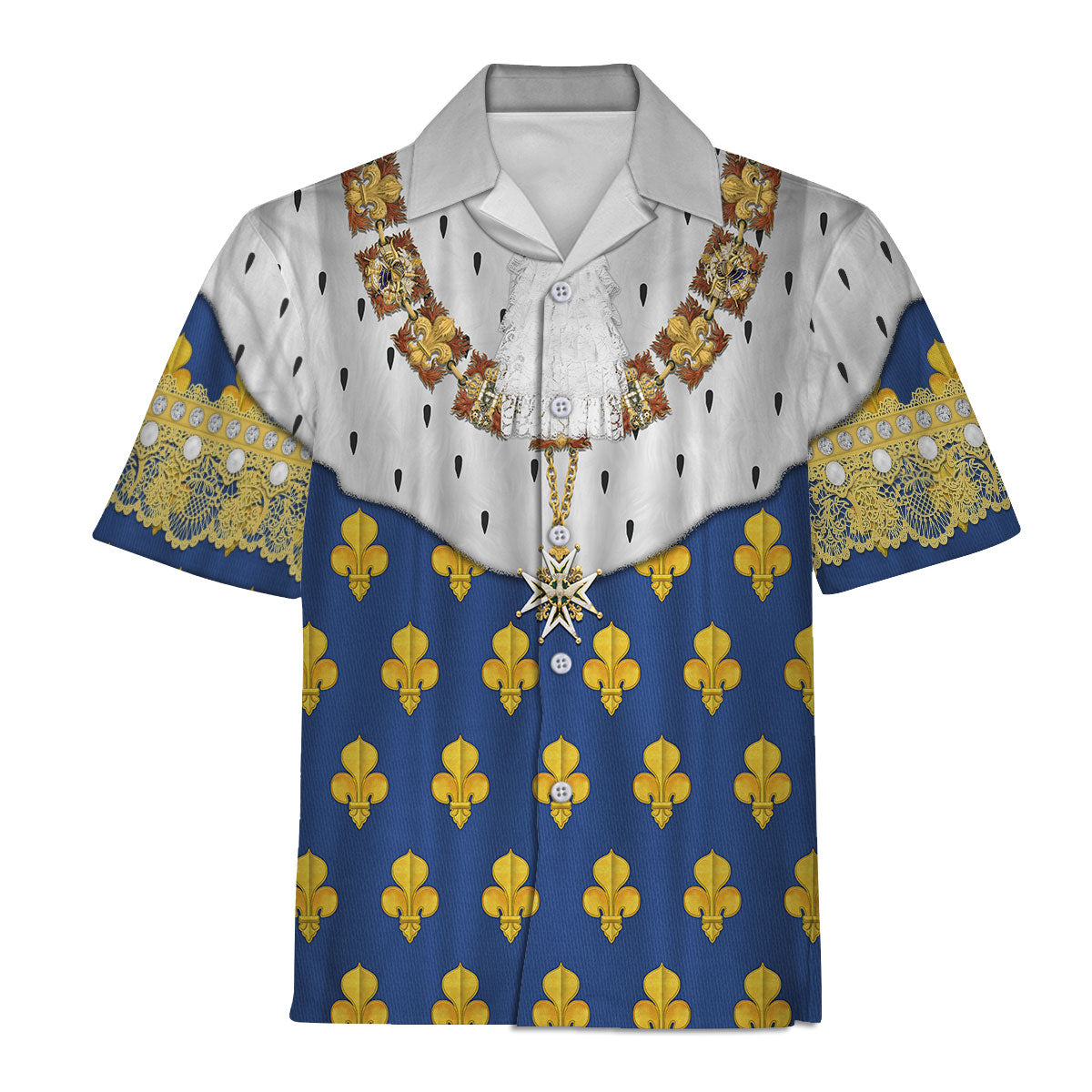 For all-over-print apparel lovers, the The Halloween Shop Louis XIV of France in Coronation Robes Costume All Over Print Hawaiian shirt is a spectacular choice that combines historical elegance with modern flair. This unique piece from The Halloween Smoke makes for an unforgettable gift, especially for those who appreciate personalization and distinctive style.