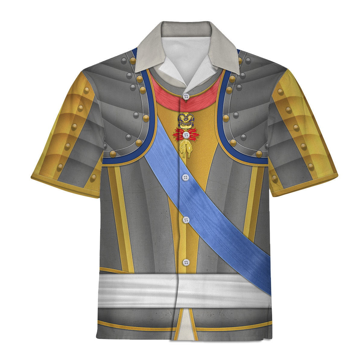 The The Halloween Shop Louis XV of France Armour Costume All Over Print Hawaiian shirt is a perfect choice for all-over-print apparel lovers, offering a unique blend of style and creativity that makes it an ideal gift for anyone who appreciates standout fashion. With the ability to personalize your look, this piece from The Halloween Smoke is sure to turn heads and spark conversations.