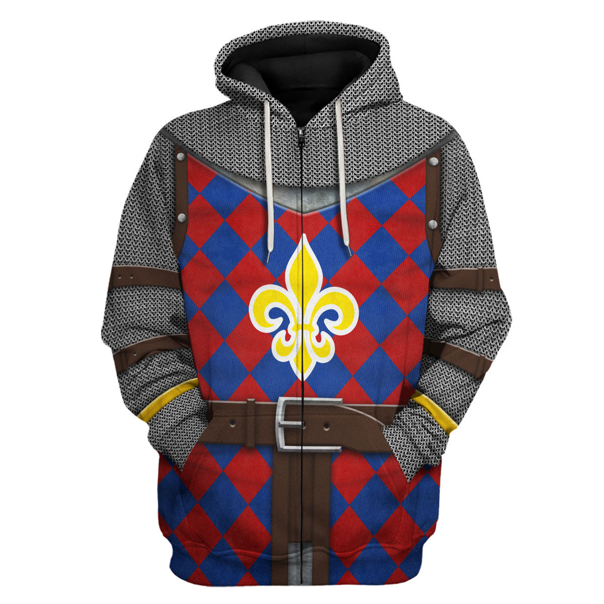 The The Halloween Smoke 13th Century French Knight Costume Hoodie zip is the perfect choice for all-over-print apparel lovers who appreciate unique and eye-catching designs. A fantastic gift for costume enthusiasts or anyone looking to stand out, this hoodie from The Halloween Smoke can be personalized to reflect your individual style.