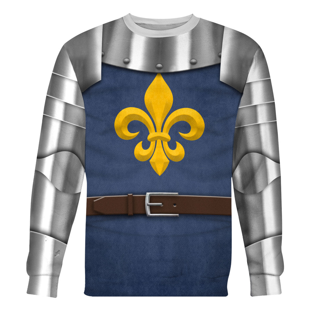 The The Halloween Smoke 15th Century French Knight Costume Sweatshirt is an exceptional choice for all-over-print apparel lovers, combining unique historical flair with modern comfort. This piece from The Halloween Smoke makes for an unforgettable gift, and can even be personalized to fit your style!