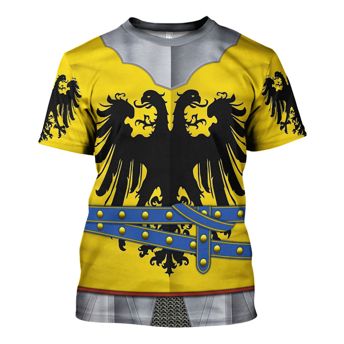 For all-over-print apparel lovers, the The Halloween Smoke 15th Century Holy Roman Empire Knight Costume t-shirt is a striking choice that blends history with modern style. This unique piece from The Halloween Smoke makes a perfect gift for enthusiasts of medieval themes and can be personalized for an extra special touch.