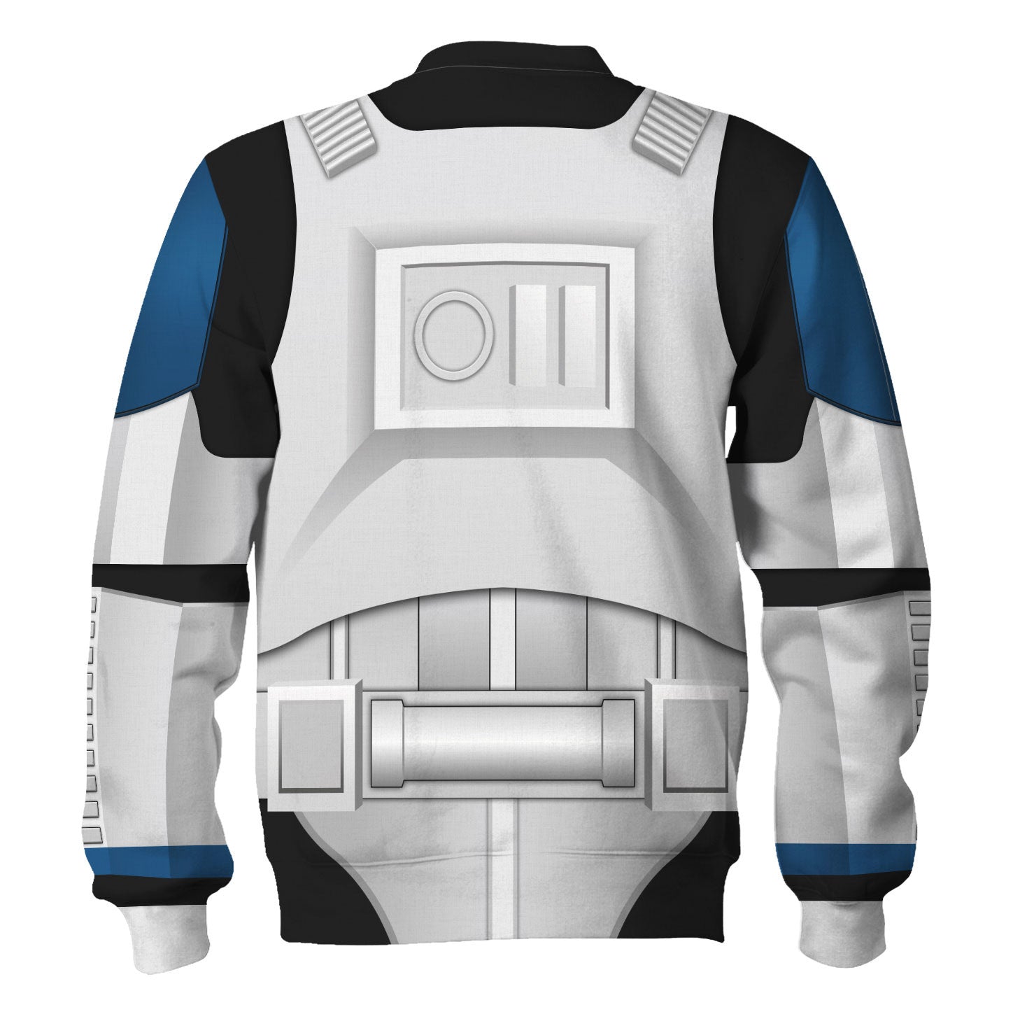 The The Halloween Smoke 501st Clone Trooper Costume sweatshirt is the ultimate choice for all-over-print apparel lovers, designed to stand out with its captivating design and uniqueness. A fantastic gift for fans of galactic adventures, this sweatshirt from The Halloween Smoke allows for personalization to truly make it one-of-a-kind.
