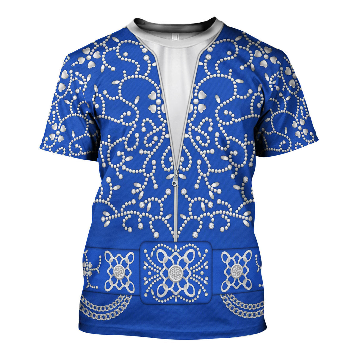 The The Halloween Smoke Elvis Blue Swirl Costume t-shirt is a perfect choice for all-over-print apparel lovers, making it a unique gift for those who want to stand out. With its vibrant design and personalization options, this t-shirt from The Halloween Smoke is sure to be a conversation starter!