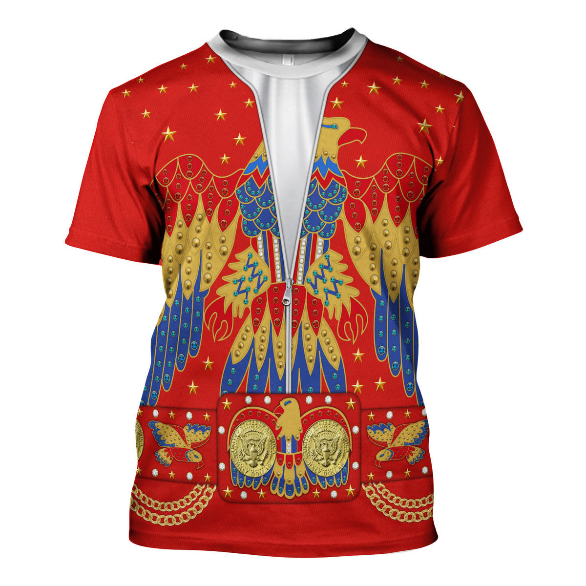 The The Halloween Smoke Elvis EAGLE Red Costume cosplay t-shirt is a standout choice for all-over-print apparel lovers, making it a unique gift for fans of daring fashion and playful costumes. With its eye-catching design from The Halloween Smoke, this t-shirt can be personalized to reflect your individual style, ensuring that you wear something truly one-of-a-kind.
