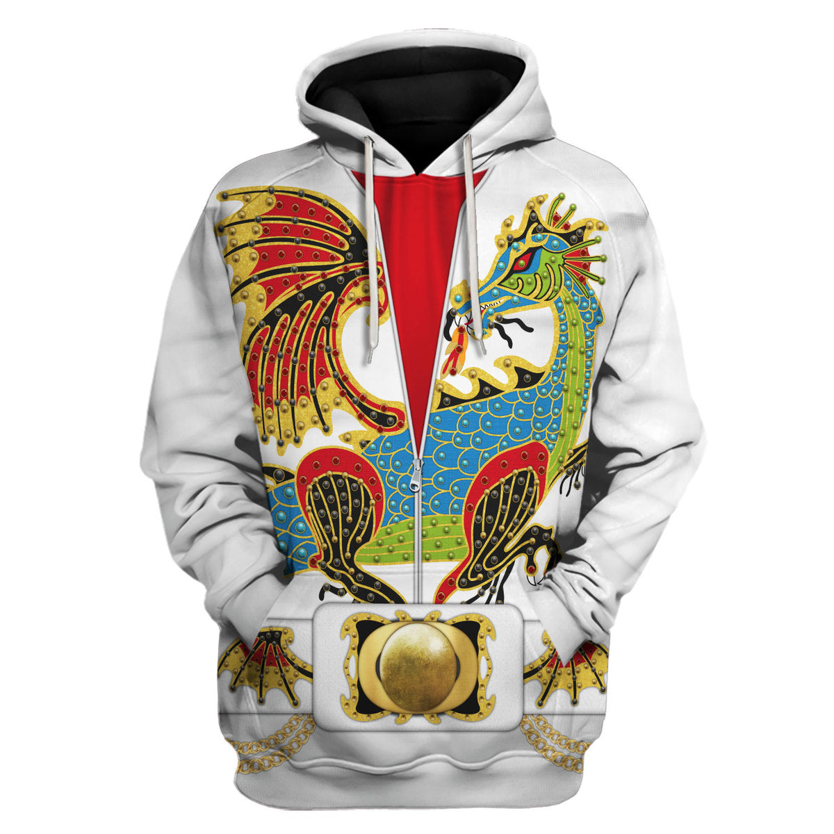 The The Halloween Smoke Elvis Presley The Dragon Outfit Costume hoodie is the ultimate choice for all-over-print apparel lovers seeking a unique and eye-catching addition to their wardrobe. This one-of-a-kind piece from The Halloween Smoke makes for a fantastic gift and can even be personalized, ensuring that it�s as special as the person wearing it.
