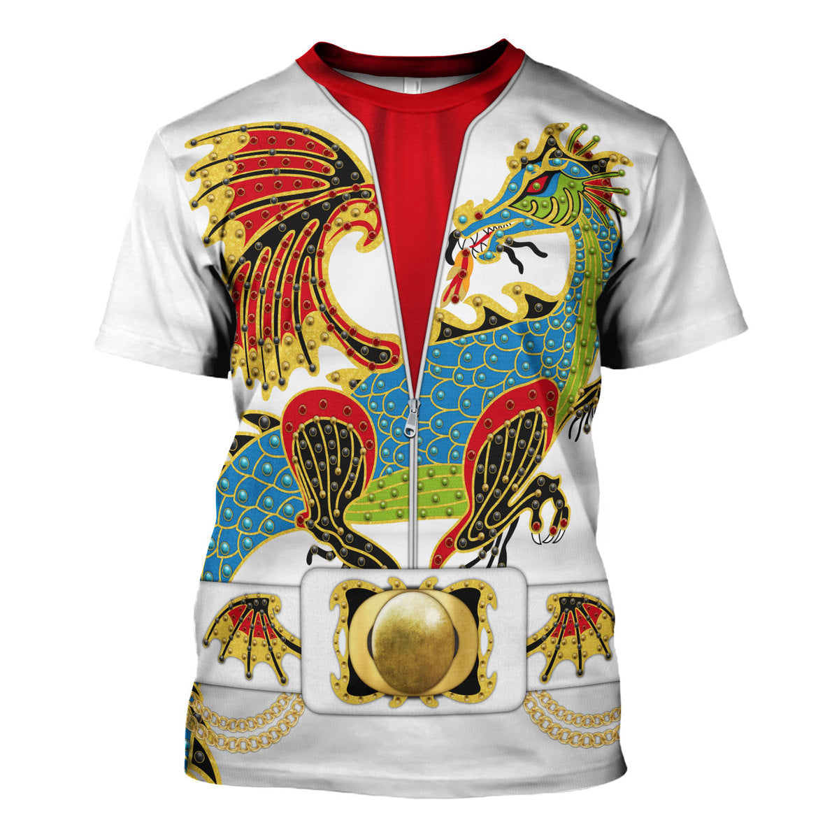 For all-over-print apparel lovers, the The Halloween Smoke Elvis Presley The Dragon Outfit Costume t-shirt is a standout choice that brings a unique flair to your wardrobe. This one-of-a-kind piece from The Halloween Smoke makes for a fantastic gift, allowing for personalization that showcases your individual style.