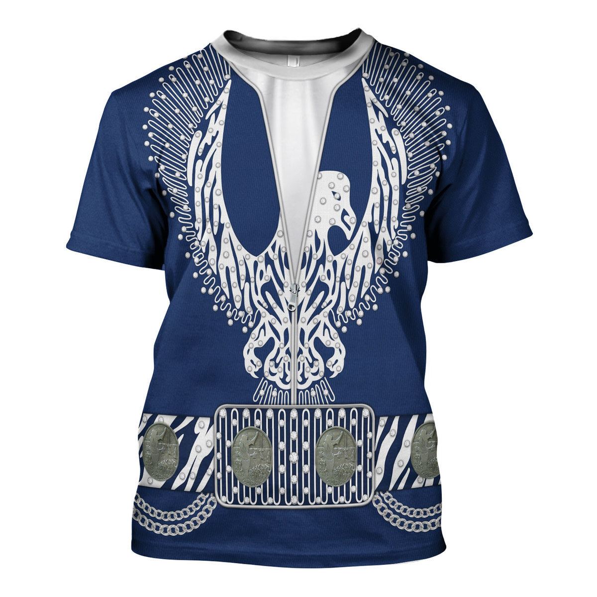The The Halloween Smoke Elvis Silver Phoenix Costume t-shirt is a perfect choice for all-over-print apparel lovers and makes for a unique gift for those who appreciate vibrant and creative designs. With its personalized touch, this exclusive piece from The Halloween Smoke is sure to stand out in any wardrobe.