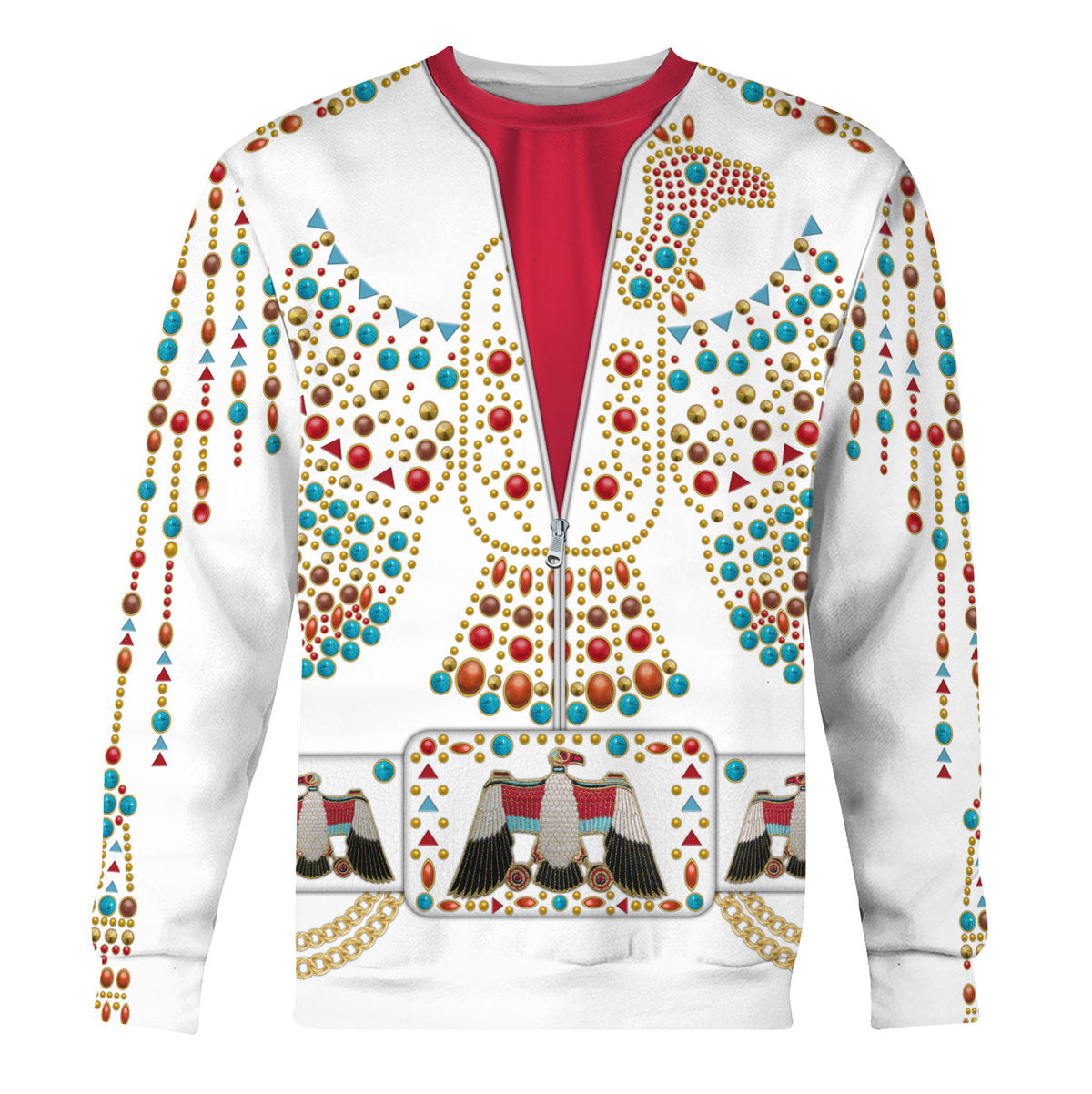 The The Halloween Smoke Elvis Thunderbird Costume sweatshirt is the ultimate choice for all-over-print apparel lovers, making it a unique gift that stands out in any wardrobe. With its personalized design, this piece from The Halloween Smoke is perfect for those who appreciate one-of-a-kind fashion statements.