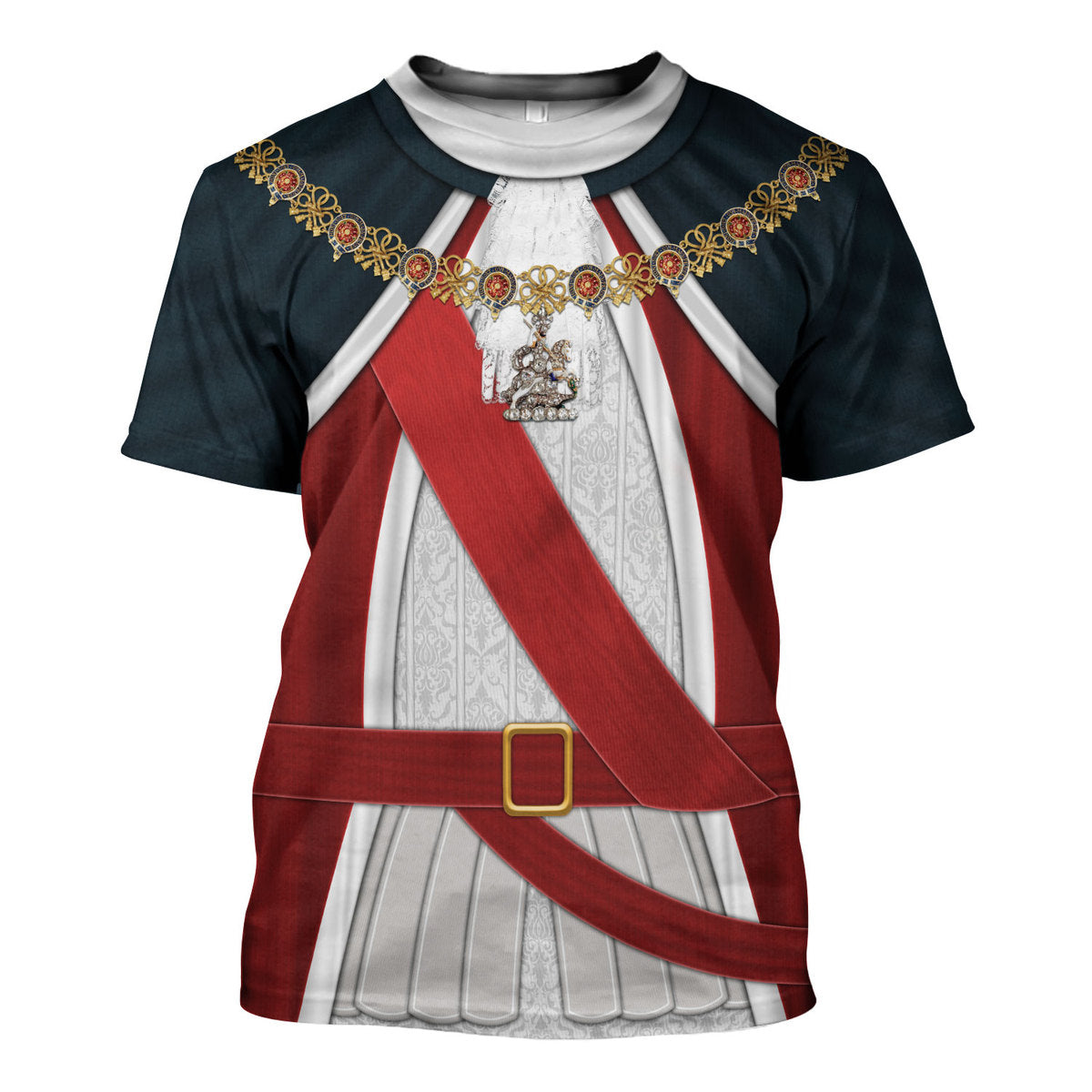 The The Halloween Smoke George I of England Costume t-shirt is the perfect choice for all-over-print apparel lovers, offering a unique and whimsical look that makes it an ideal gift for anyone who enjoys a touch of historical flair. With its personalized design from The Halloween Smoke, this t-shirt ensures you stand out in any crowd.