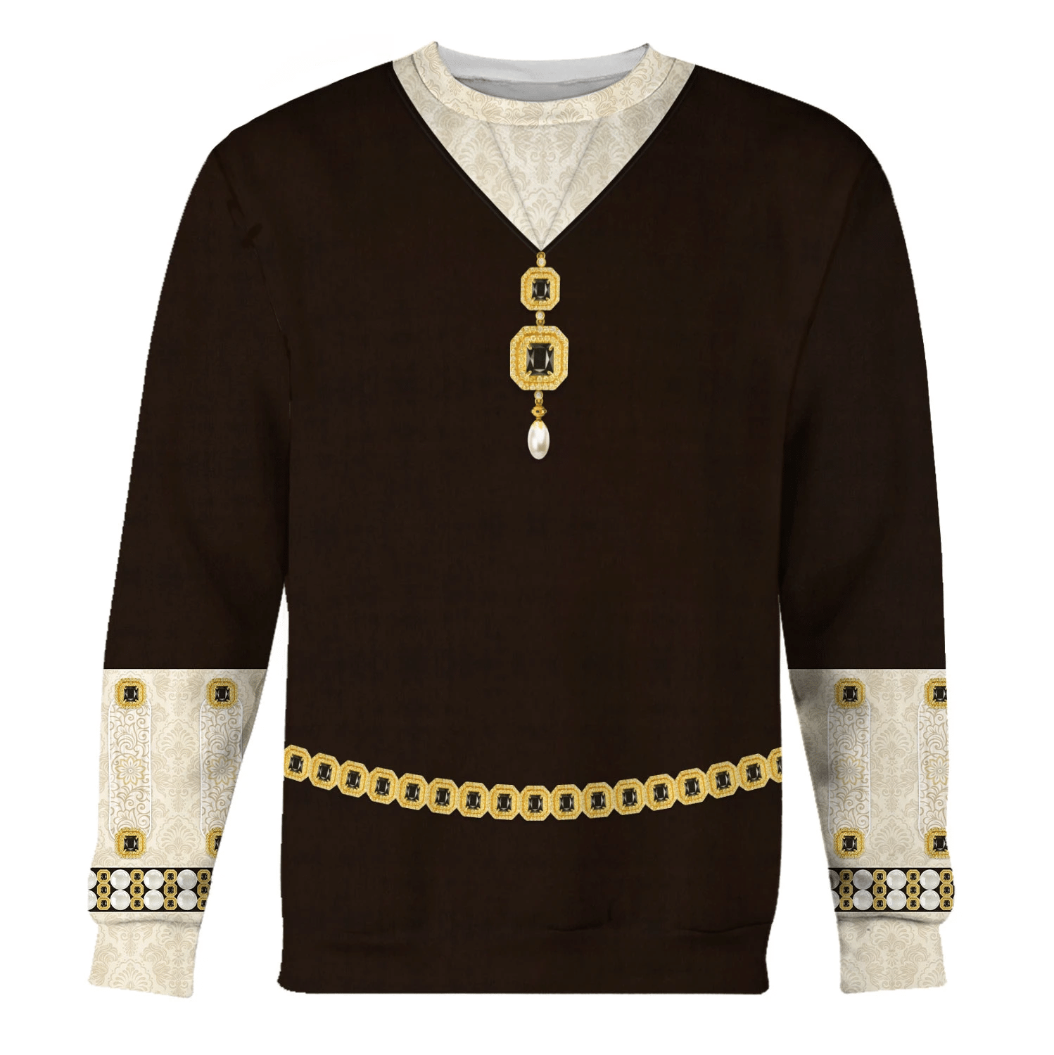 The The Halloween Smoke Maria Tudor Monarch of England Costume sweatshirt is the perfect choice for all-over-print apparel lovers, offering a unique blend of historical flair and modern style. This one-of-a-kind piece from The Halloween Smoke makes for an exceptional gift and can be personalized to reflect your unique taste.