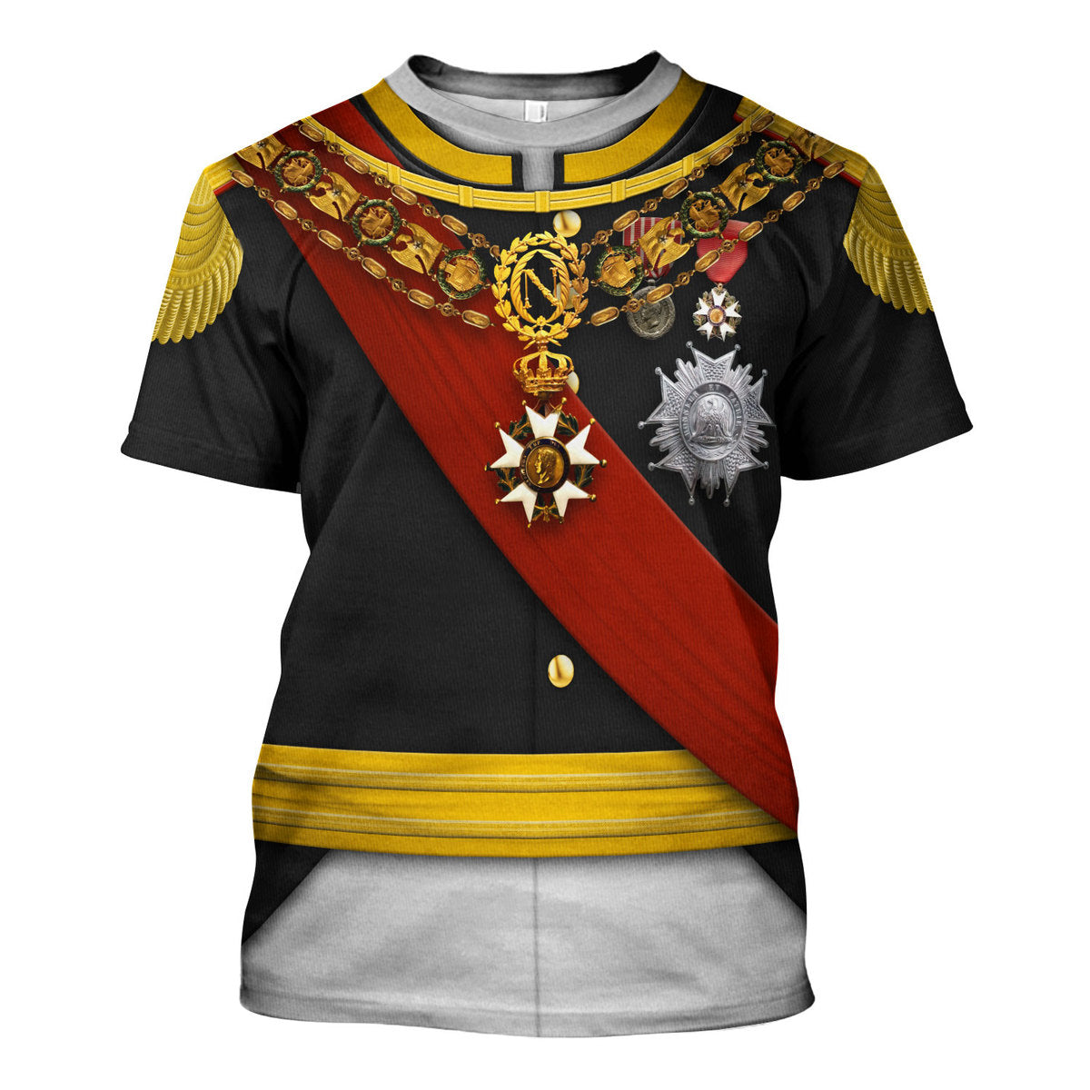 The The Halloween Smoke Napoleon III in Coronation Robes Uniform All Over Print t-shirt is the perfect choice for all-over-print apparel lovers, offering a unique blend of history and style that makes it an unforgettable gift. With its personalized touch, this exclusive design from The Halloween Smoke is sure to impress anyone who values originality and flair.