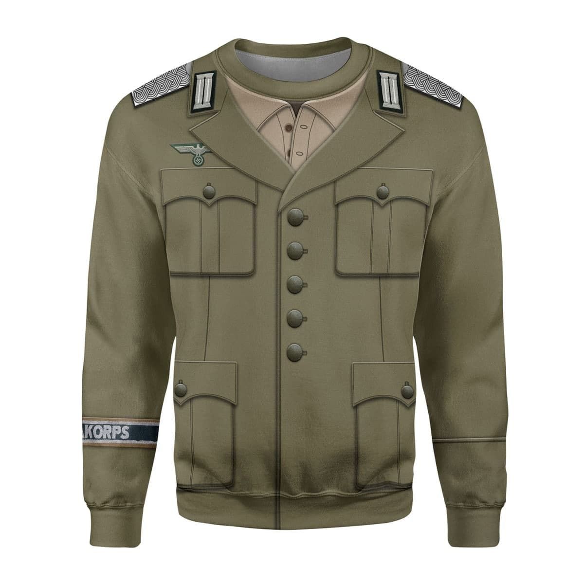 The The Halloween Smoke Wehrmacht Heer Afrikakorps Costume sweatshirt is a perfect choice for all-over-print apparel lovers, making it a unique gift for those who appreciate bold and distinctive styles. With its personalization options, this piece from The Halloween Smoke allows you to express your individuality like never before.
