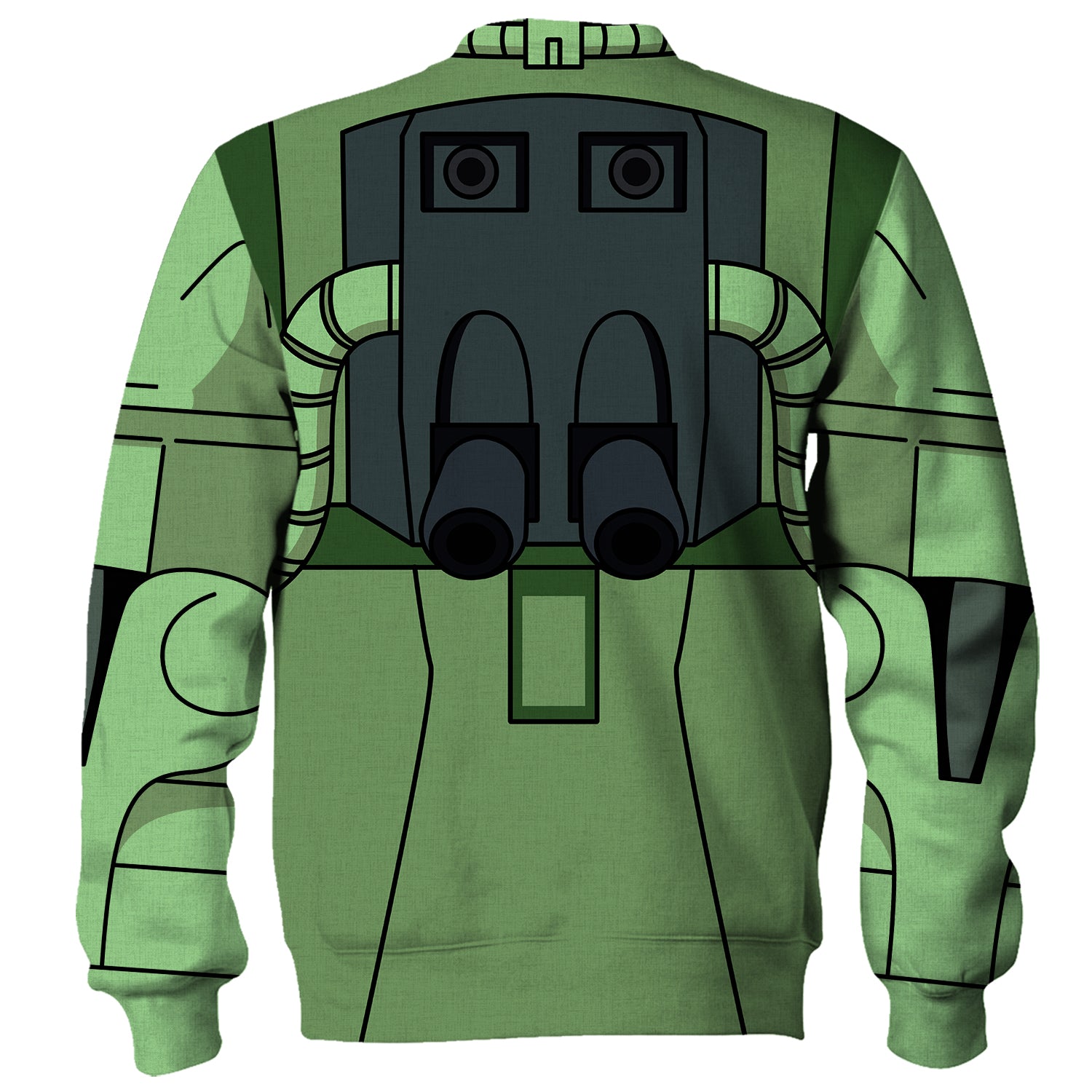 The The Halloween Smoke Zaku II Mobile Suit Gundam Costume All Over Print sweatshirt is a fantastic choice for all-over-print apparel lovers, offering a unique style that can also serve as an unforgettable gift for fans of the franchise. With its personalized touch from The Halloween Smoke, this sweatshirt is sure to stand out in any collection.