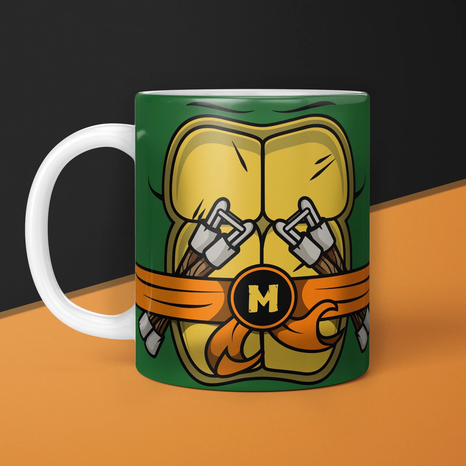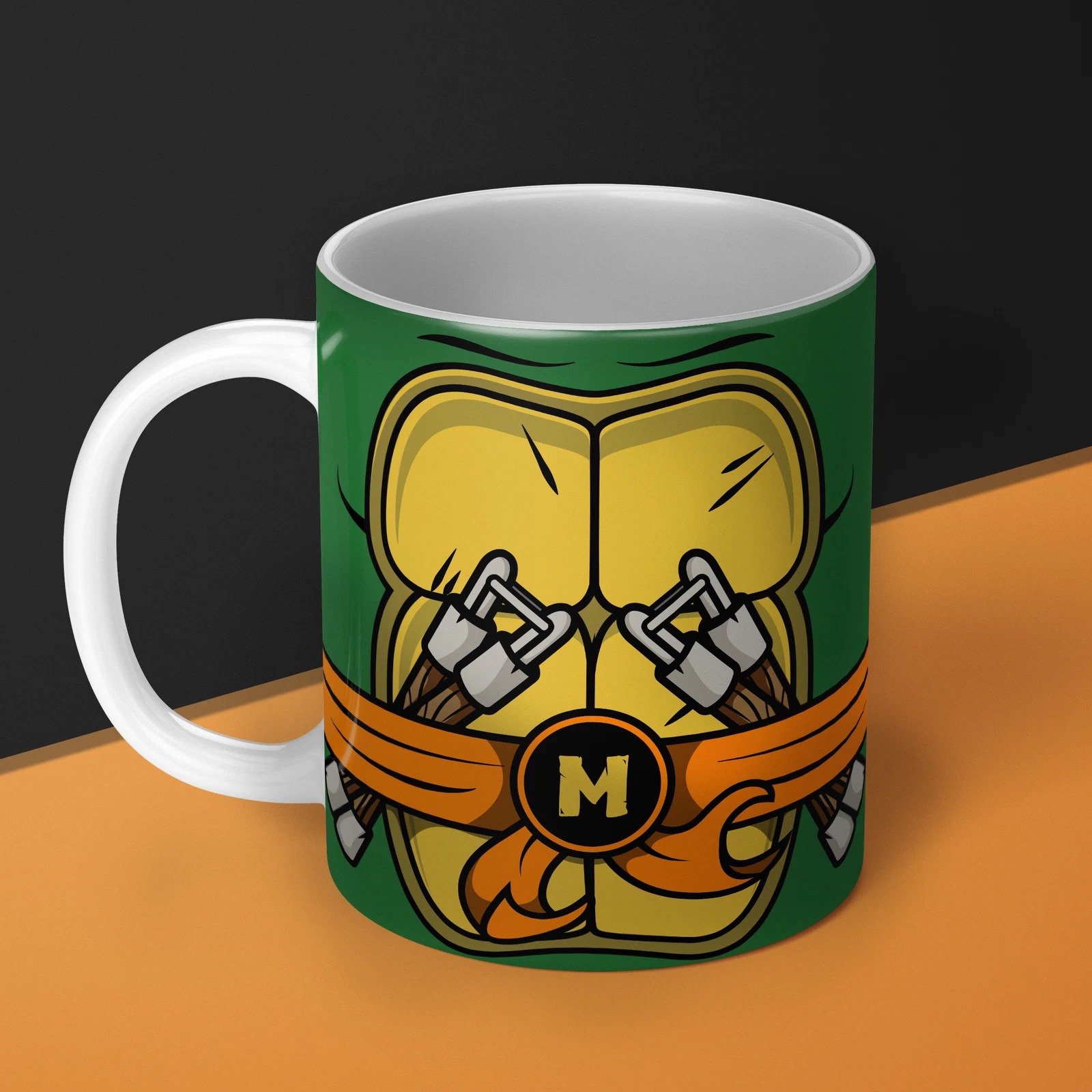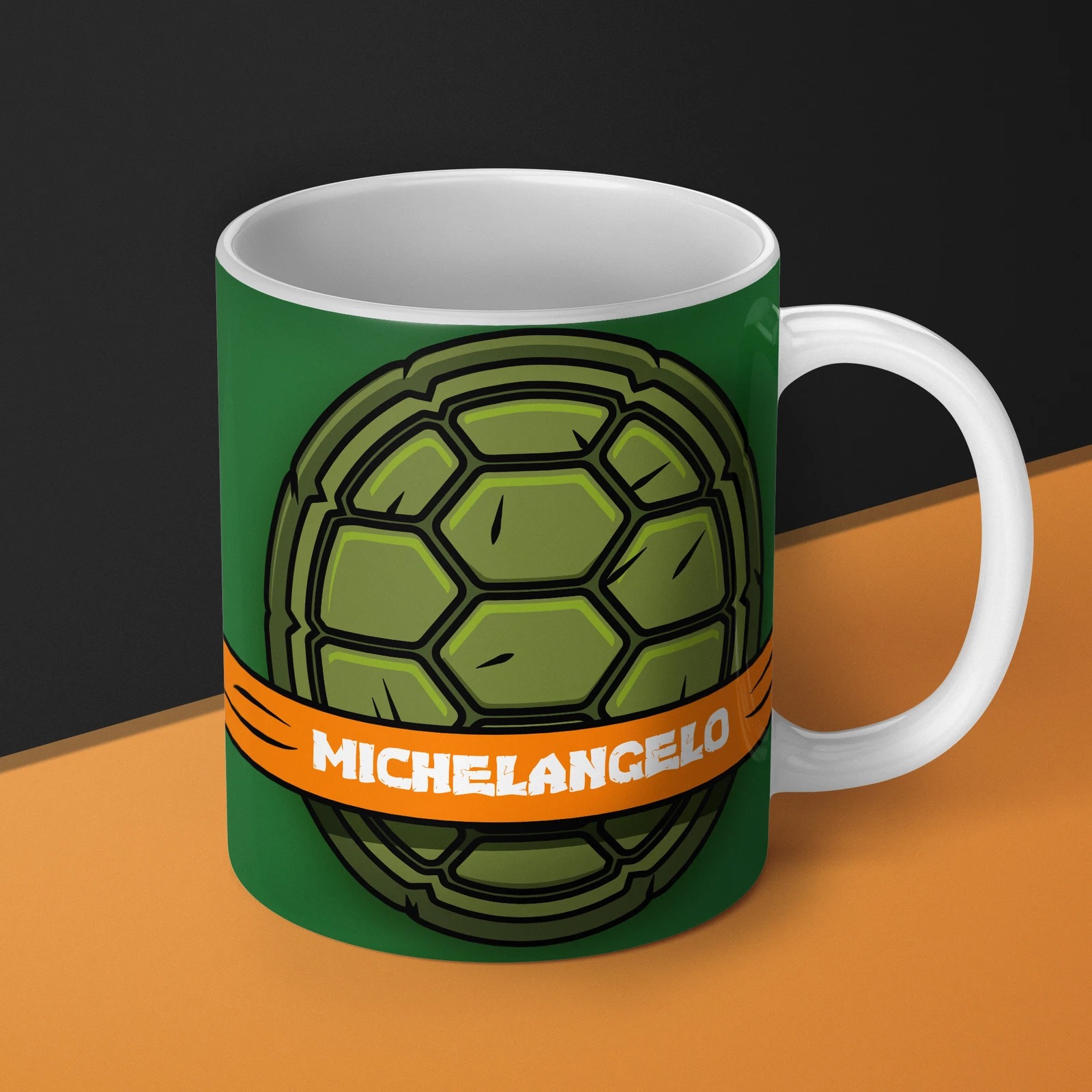 This beautiful 11oz, 15oz novelty coffee mug has an original illustration that was inspired by Teenage Mutant Ninja Turtle’s MICHELANGELO all you need is some pizza and your all set.