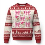 Vintage Pink Christmas Coquette Bow Ugly Christmas Sweater Santa Claus Festive Xmas Vibe