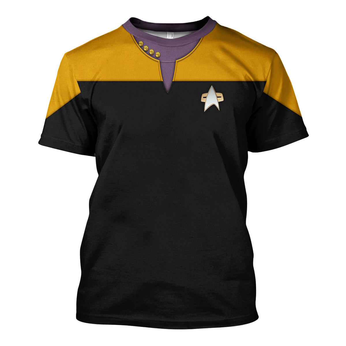The Voyager Yellow Costume t-shirt from The Halloween Smoke is a fantastic choice for all-over-print apparel lovers, offering a vibrant and unique design that makes it the perfect gift for any occasion. With the option for personalization, you can make this shirt truly your own or surprise someone special with a one-of-a-kind piece.